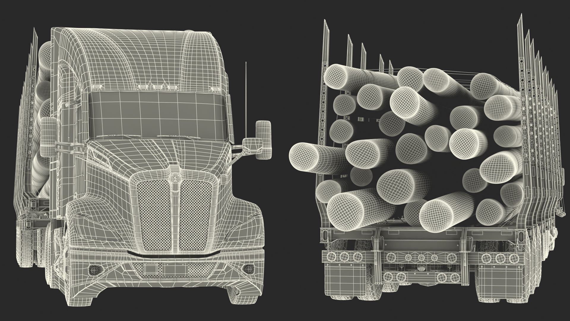 Truck With Logging Trailer Rigged is a three-dimensional model of a heavy duty forestry industry transport equipment.