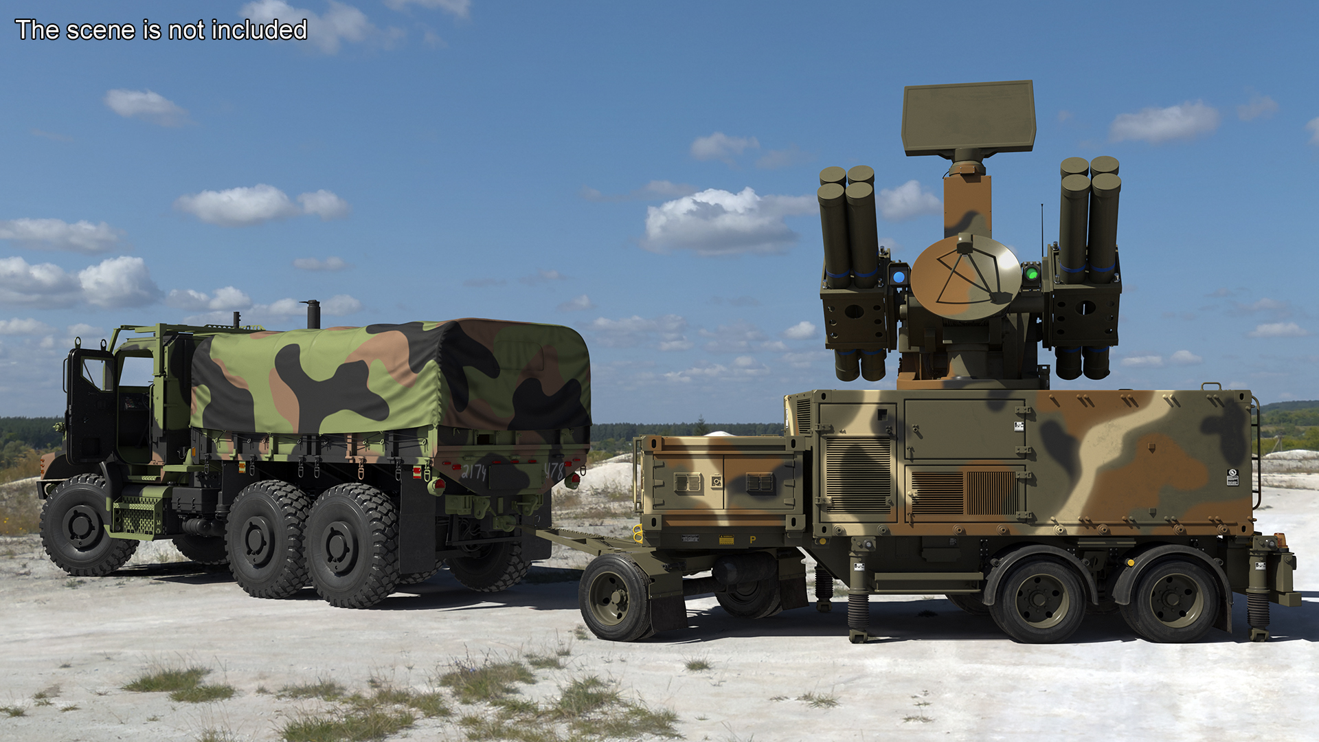 Truck with Trailer Air Defense Missile Complex Rigged is a high quality, photo real 3d model that will enhance detail and realism to any of your rendering projects. The model has a fully textured, detailed design that allows for close-up renders, and was originally modeled in 3ds Max 2020 and rendered with V-Ray. Renders have no postprocessing!
