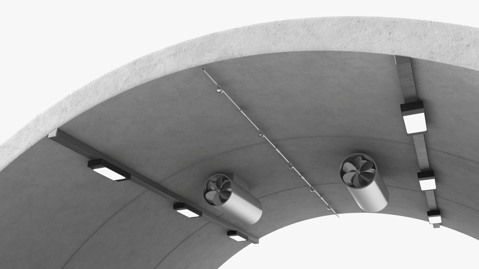 In a car tunnel cross-section 3D visualization, a digital model displays the tunnel's internal features in detail. It includes elements such as the roadway, support structures, ventilation, and lighting. This visualization is essential for engineers and designers to understand the tunnel's layout and functionality. The 3D model allows for interactive exploration, helping to identify design improvements, ensure safety compliance, and streamline construction planning and communication.