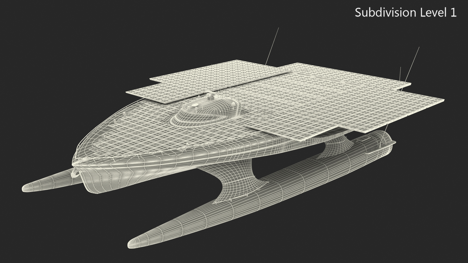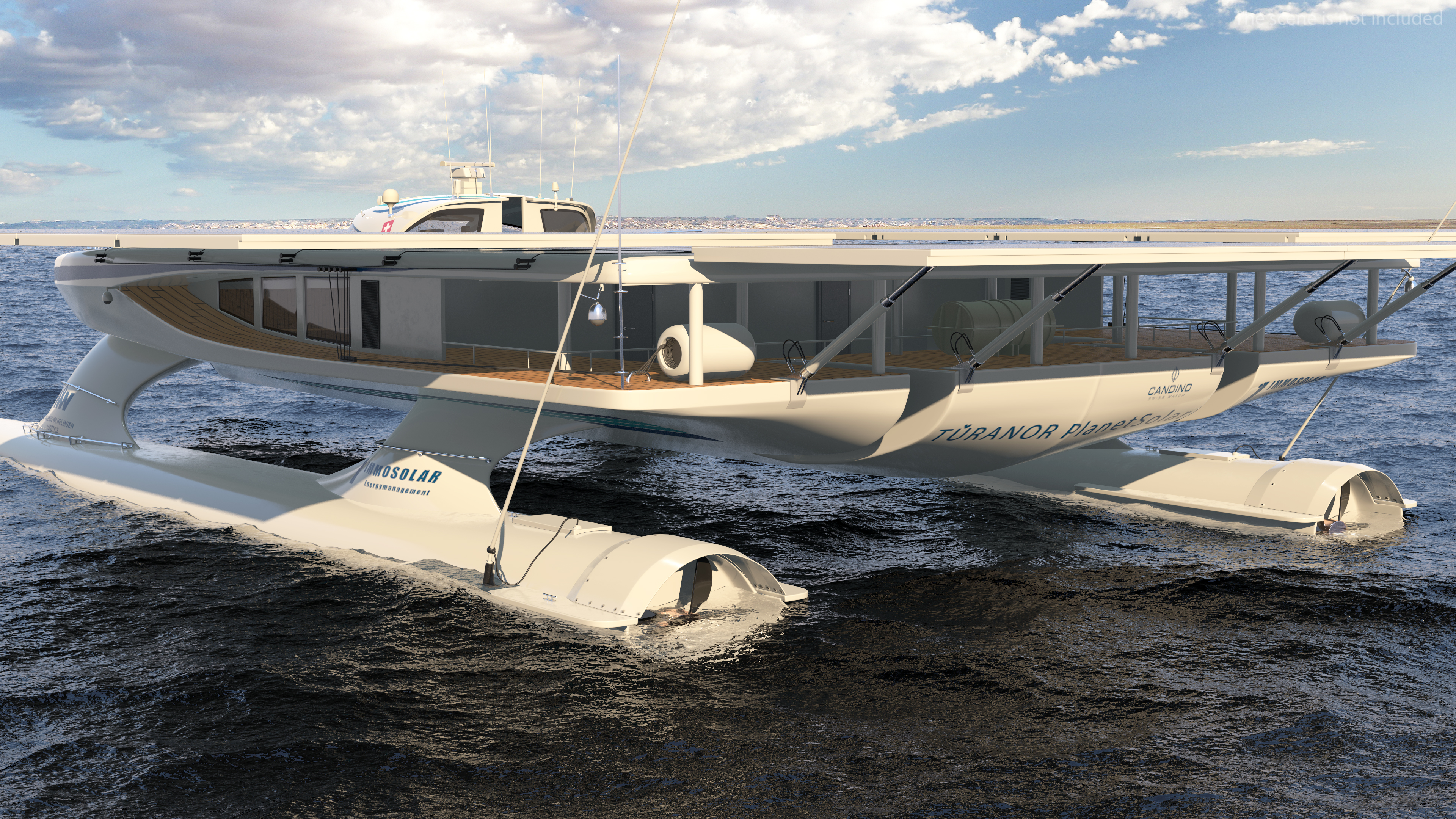 Turanor PlanetSolar Boat is a 3d model of solar-powered vessel that completed the first circumnavigation of the globe using only solar energy in 2012.