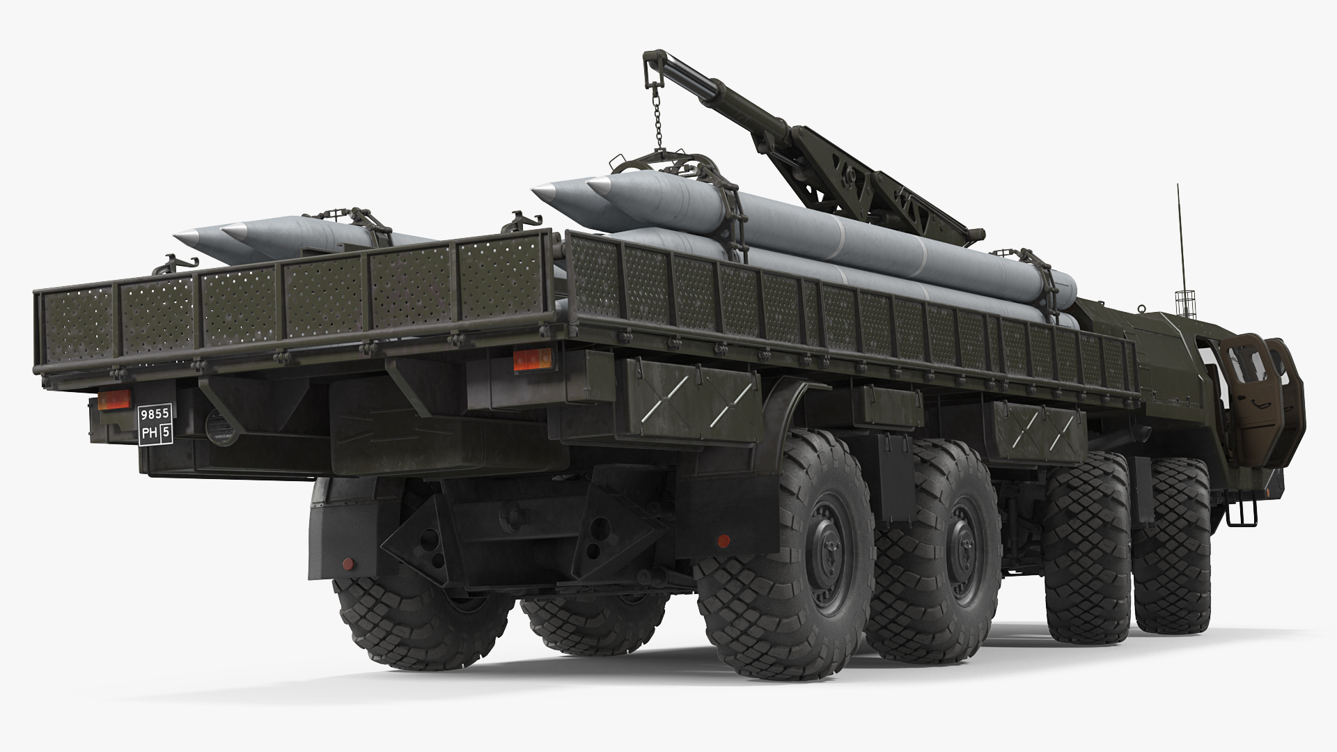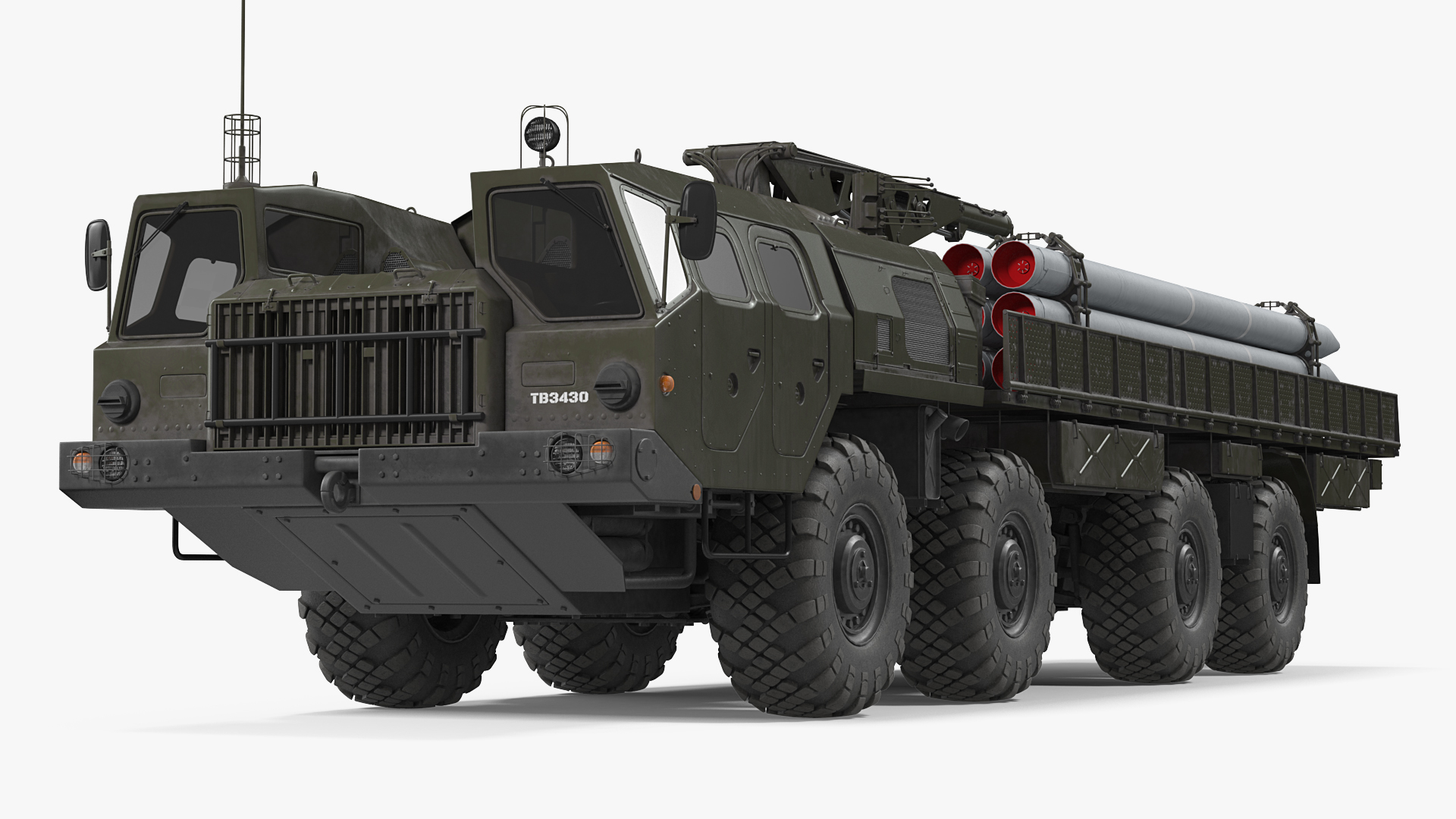 TZM 9T234 2 Transloader with Crane and Rockets Rigged is a high quality, photo real 3d model that will enhance detail and realism to any of your rendering projects. The model has a fully textured, detailed design that allows for close-up renders, and was originally modeled in 3ds Max 2020 and rendered with V-Ray. Renders have no postprocessing!