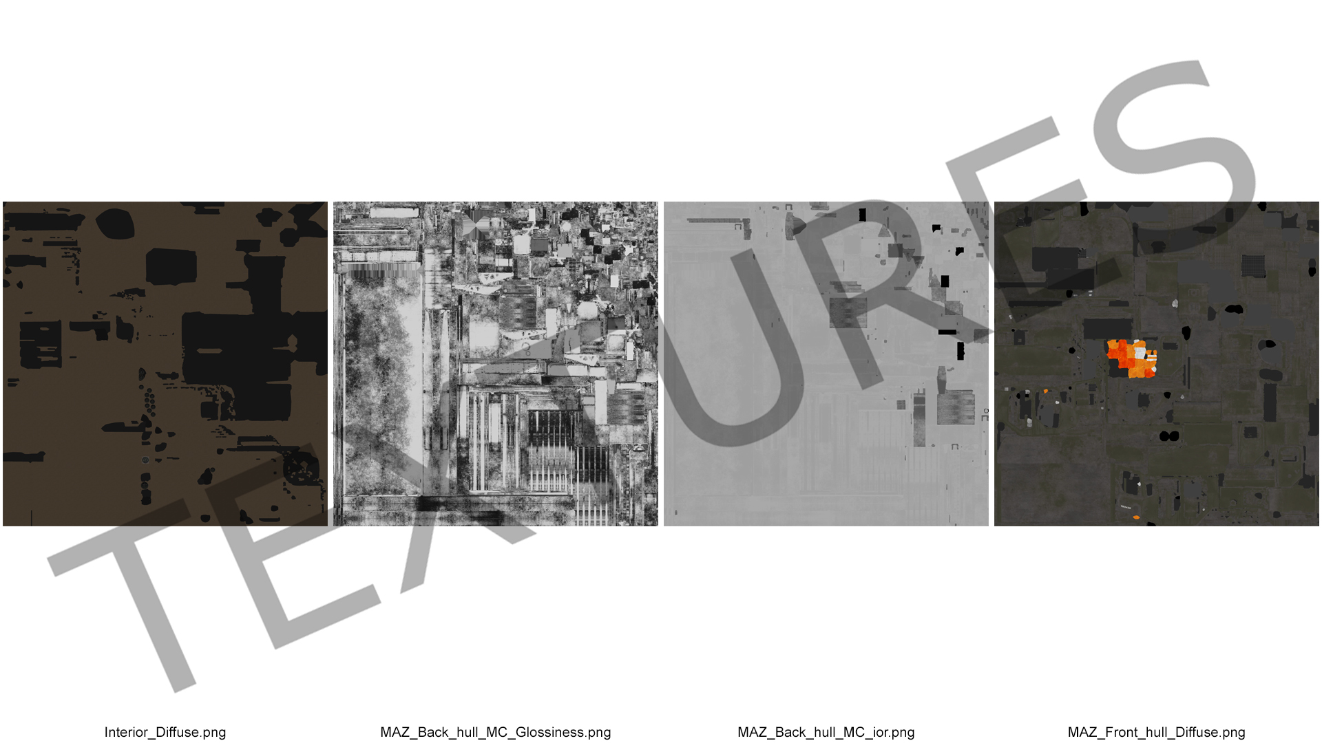 All textures and materials are included and mapped. (All colors can be easily modified.)