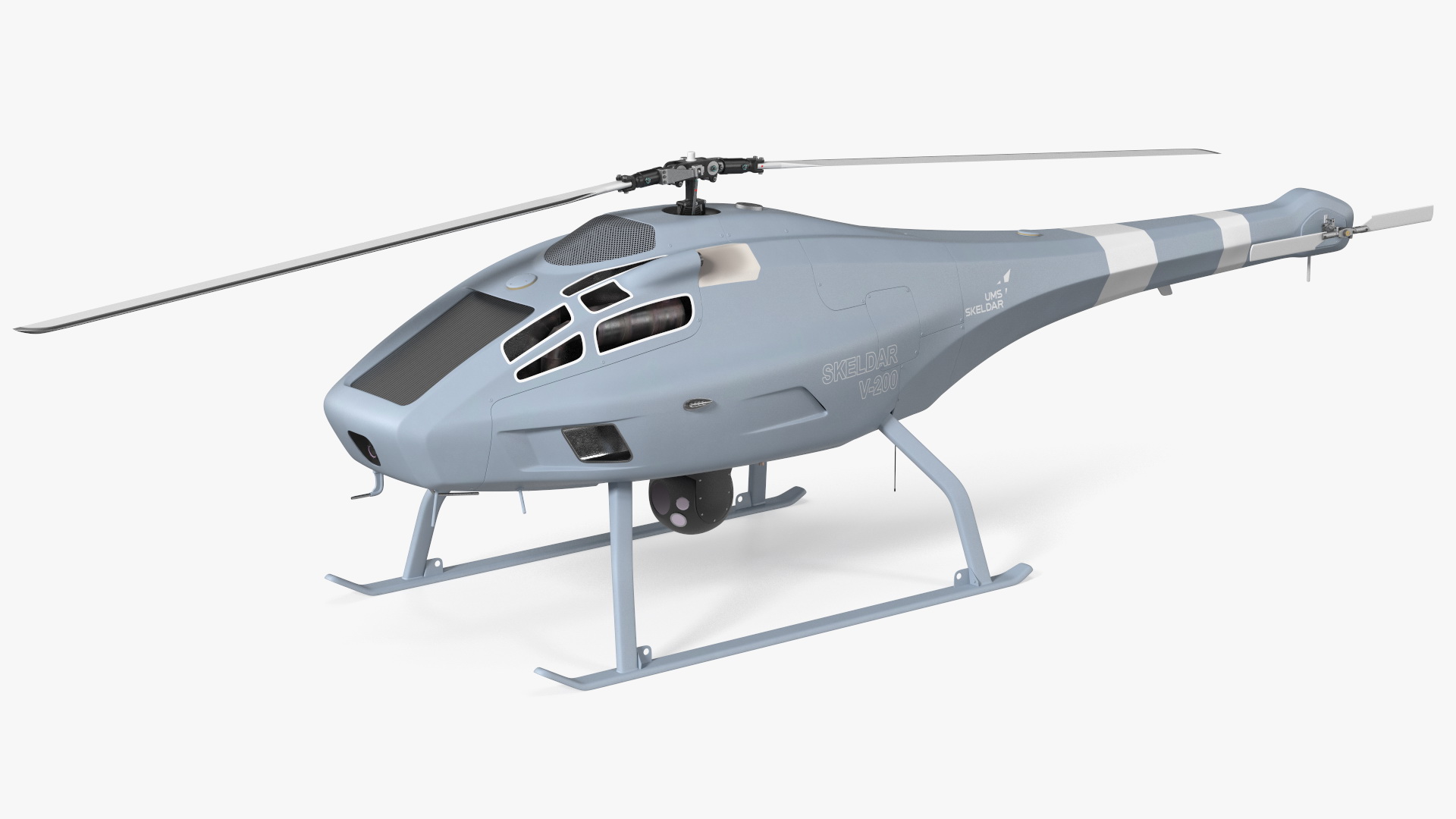 UMS Skeldar V200 UAV Helicopter is a 3d model of Skeldar v 200 medium-range VTOL (Vertical Take Off and Landing) UAV (Unmanned Aerial Vehicle) developed by the Swedish aerospace company Saab. It is a remotely piloted aerial system used for a wide range of applications such as reconnaissance, identification, target acquisition and electronic warfare. It can hover for hours while providing real-time information to a control station or to a remote video terminal. The compact solution is fully autonomous, controlled by high-level-commands.