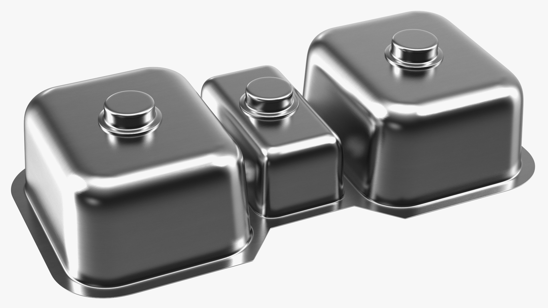 Undermount Triple Bowl Kitchen Sink is a high quality, photo real 3d model that will enhance detail and realism to any of your rendering projects. The model has a fully textured, detailed design that allows for close-up renders, and was originally modeled in 3ds Max 2020 and rendered with V-Ray. Renders have no postprocessing!