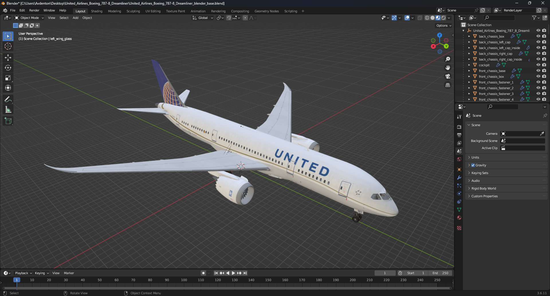 Crafted with meticulous detail, this model captures the sleek design and innovative structure of the Boeing 787-8, featuring realistic textures and components such as the distinctive wing shape, engines, fuselage, and United Airlines branding. The model also includes detailed elements like passenger windows, landing gear, and tailfin, making it ideal for realistic aviation renderings and close-up visuals. Its design reflects the modern engineering and technological sophistication of the Dreamliner series.