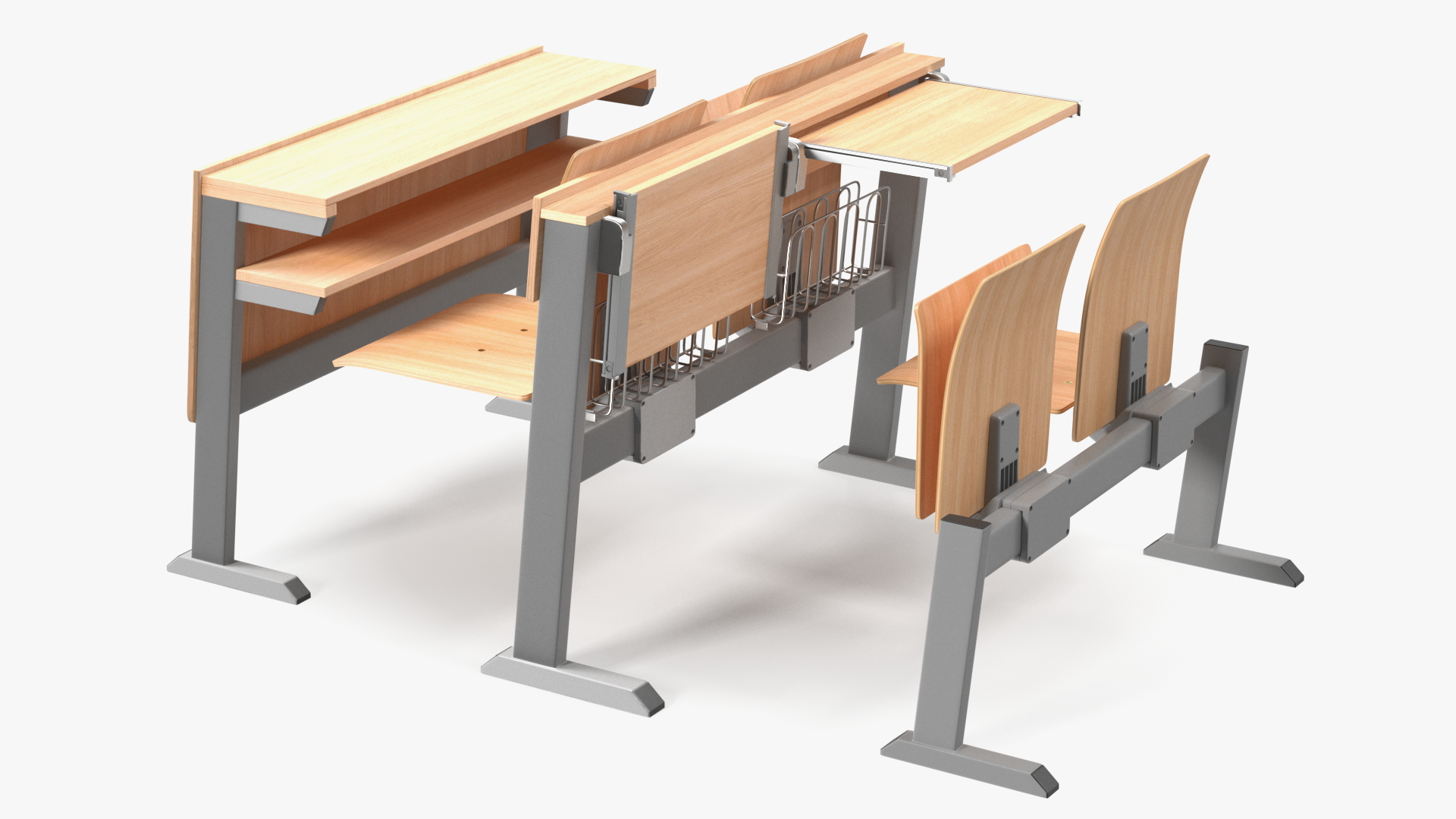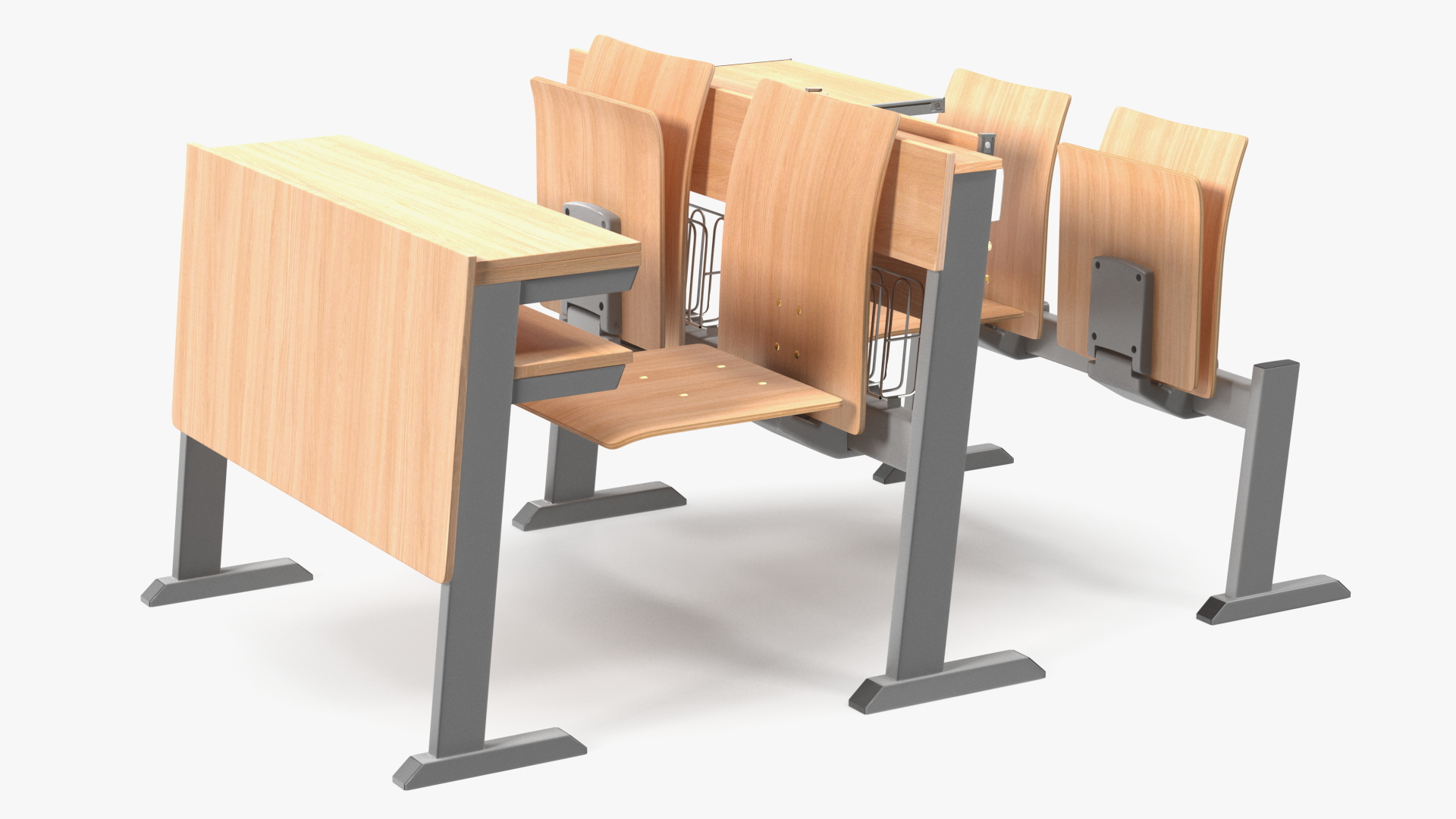 University Seating System Set Four Seats is a three-dimensional model of a special desks set for multifunctional spaces, college halls, academy institutions, auditoriums and university halls.
