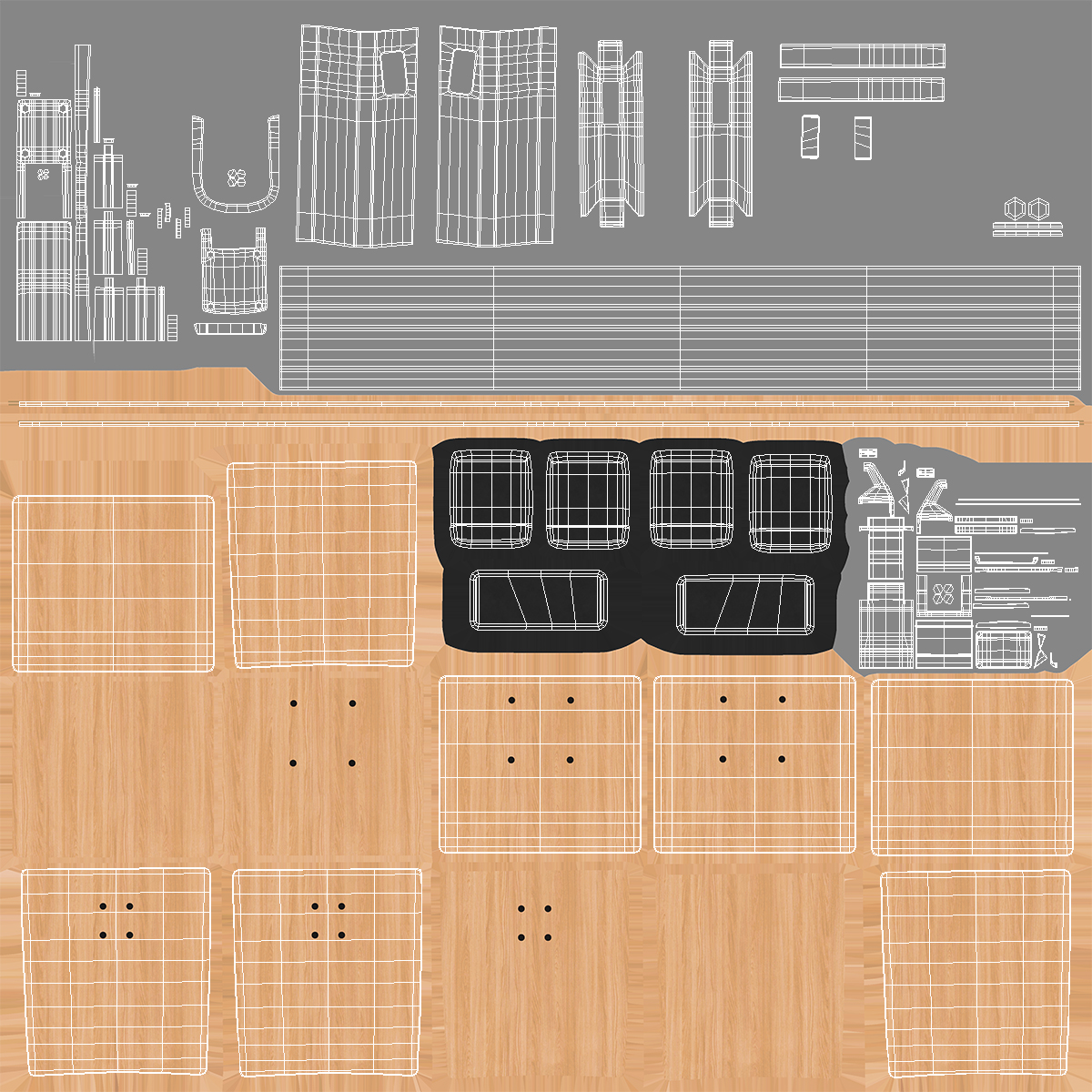 All textures and materials are included and mapped. (All colors can be easily modified.)