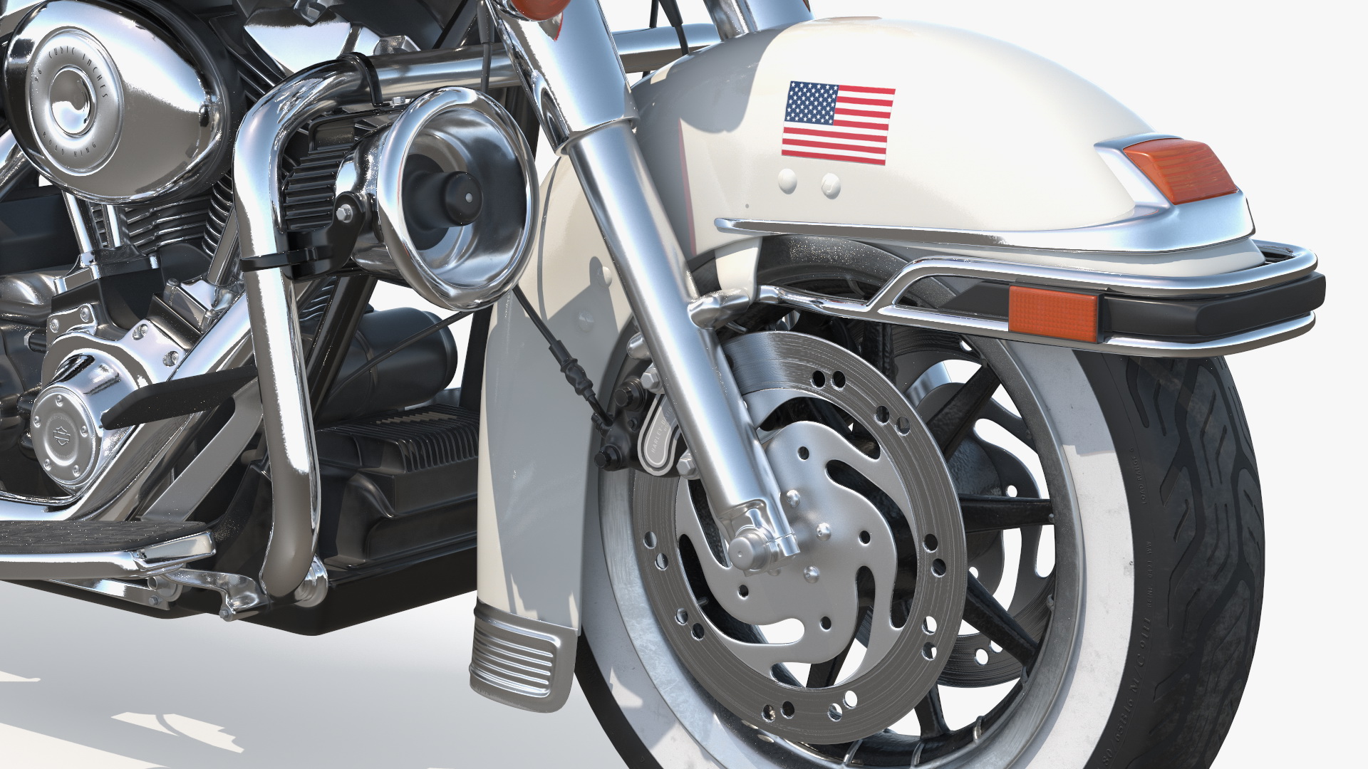 US Sheriff Motorcycle Road King Rigged is fully rigged and is ready to be animated. You can easily position it the way you need or animate it the way your project requires using helpers in 3D Studio Max. See the turntable to get an idea of how rigging works.