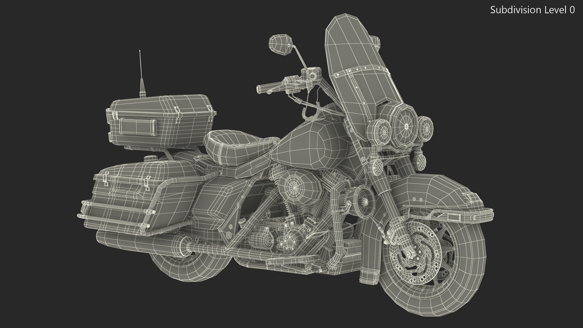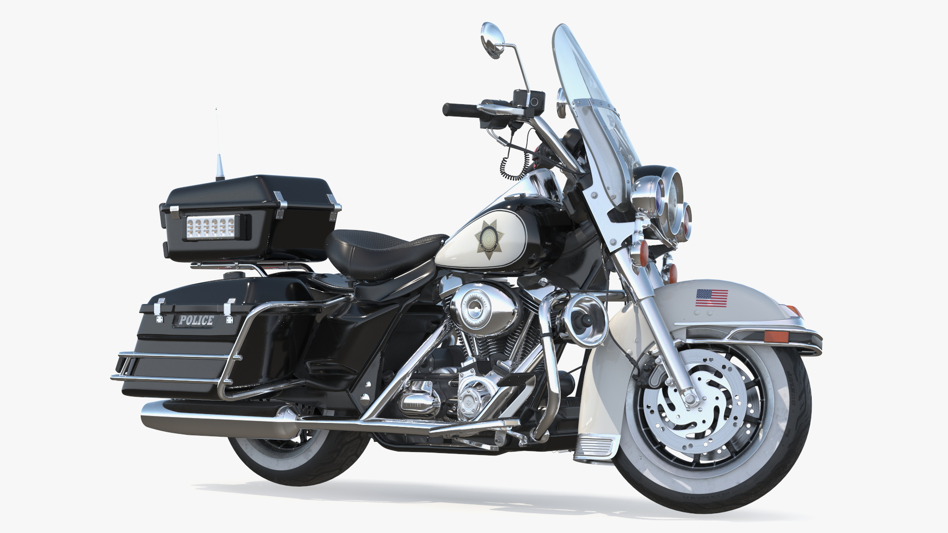US Sheriff Motorcycle Road King Rigged is a 3d model of a fully rigged classic law enforcement motorcycle, often used by sheriff departments across the United States for patrol and ceremonial purposes.