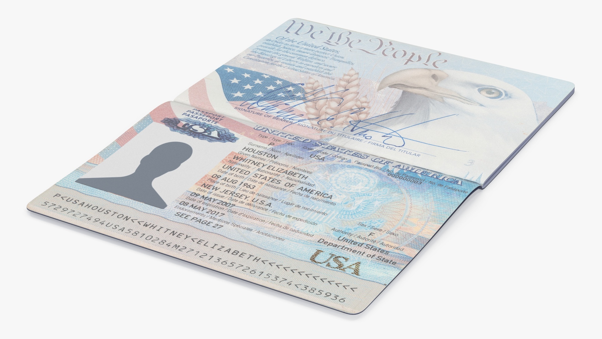 USA Passport Open Page is a three-dimensional model of United States of America passport which is an official document issued by the U.S. government.