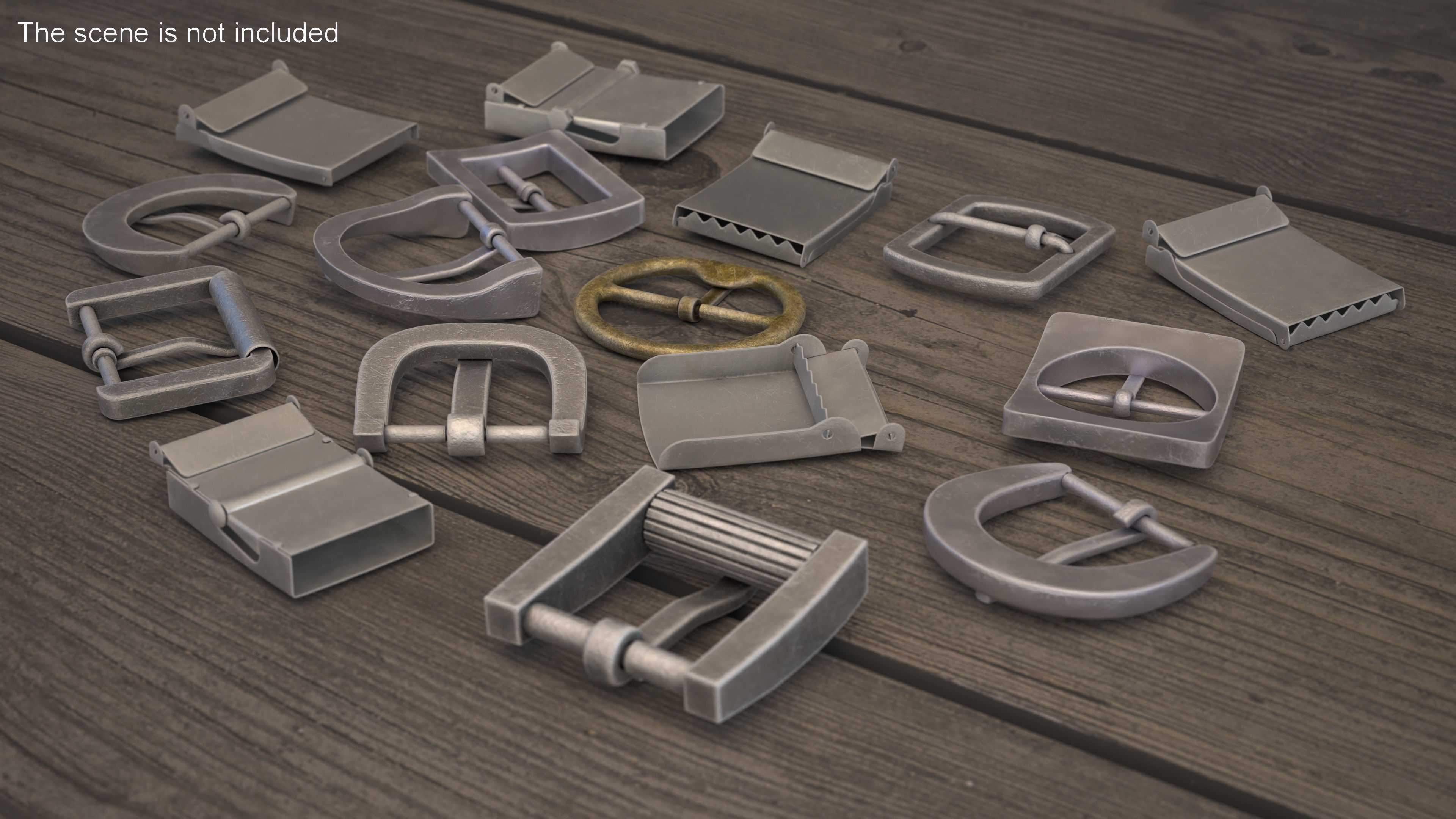 Used Belt Bucklers is a set of 3d models of clasps for fastening two ends, such as straps or a belt, in which a device attached to one of the ends is fitted or coupled to the other.