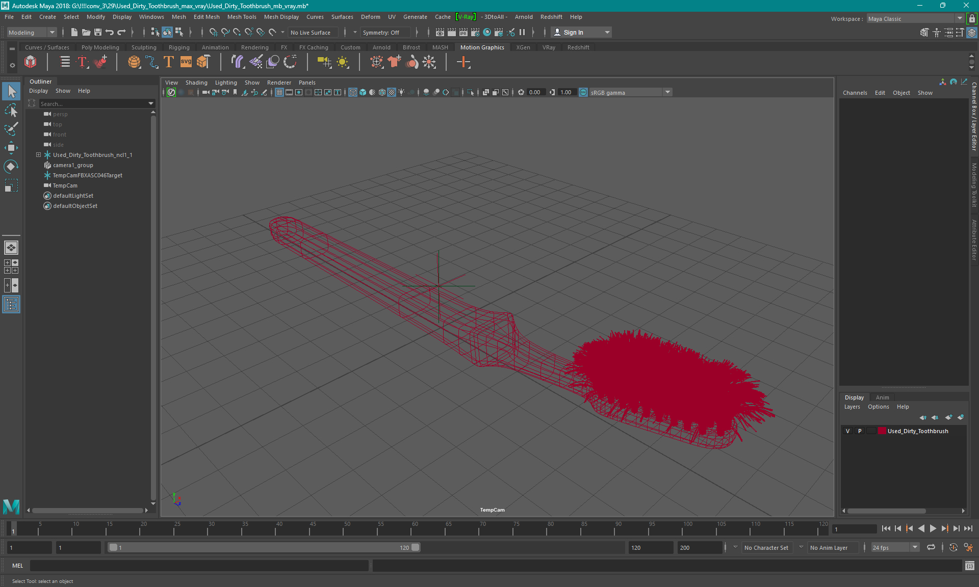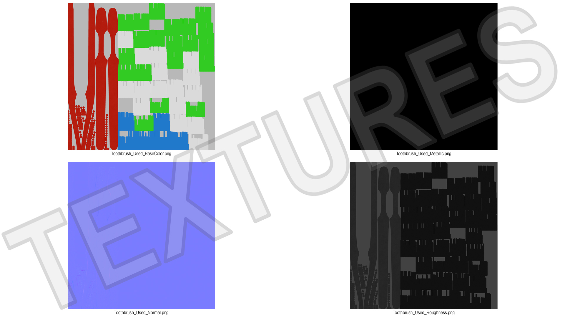 Used Toothbrush is a high quality, photo real 3d model that will enhance detail and realism to any of your rendering projects. The model has a fully textured, detailed design that allows for close-up renders, and was originally modeled in 3ds Max 2020 and rendered with V-Ray. Renders have no postprocessing!