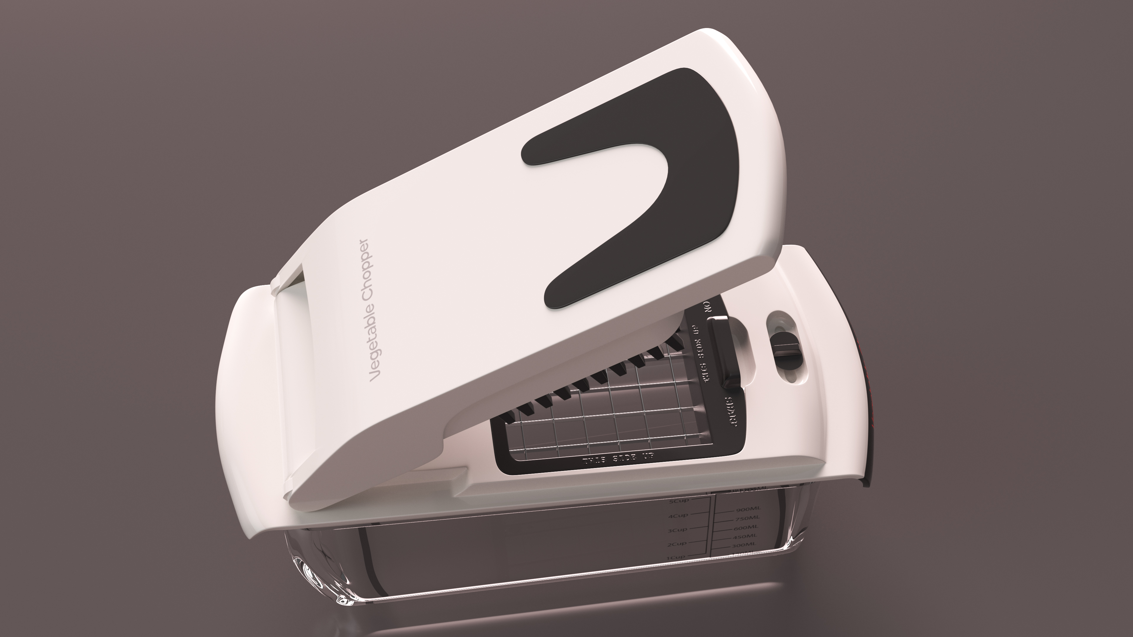 Vegetable Chopper with Large Dice Blade is a three-dimensional model of vegetable chopper type kitchen tool which is designed to meal prep by offering a range of specialized blade options to dice, chop, and slice fruits and vegetables effortlessly.