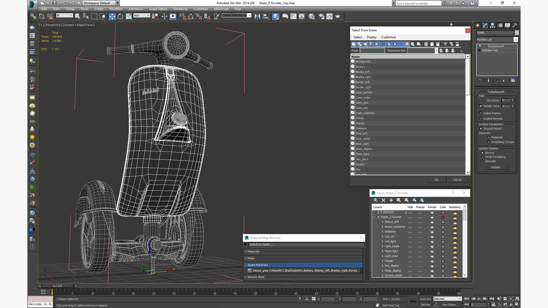 Vespa Z-Scooter is a three-dimensional model of electrical self-balancing vehicle, which used for urban mobility and recreation.
