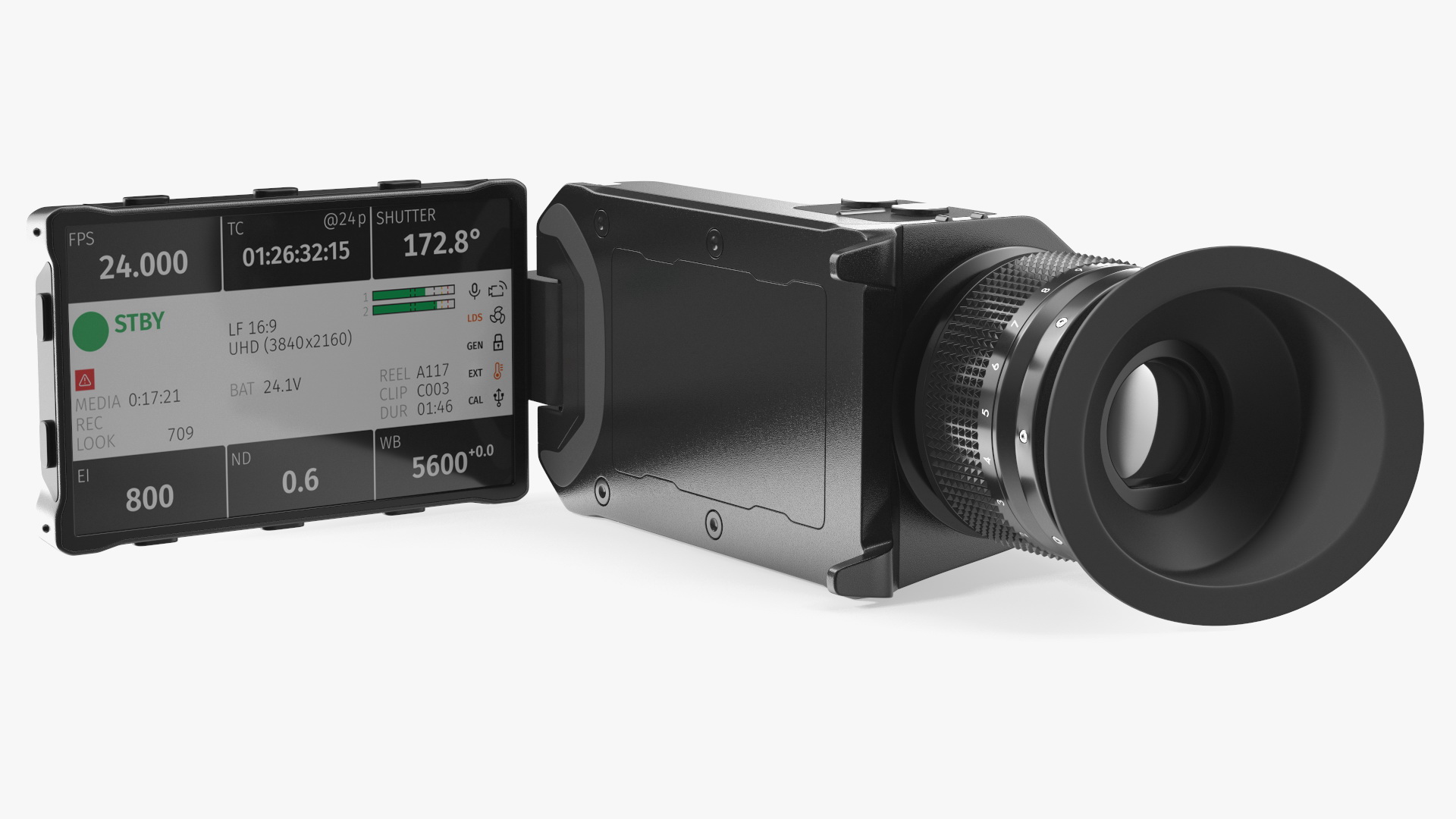 ViewFinder For Digital Cinema Camera is a high quality, photo real 3d model that will enhance detail and realism to any of your rendering projects. The model has a fully textured, detailed design that allows for close-up renders, and was originally modeled in 3ds Max 2020 and rendered with V-Ray. Renders have no postprocessing!