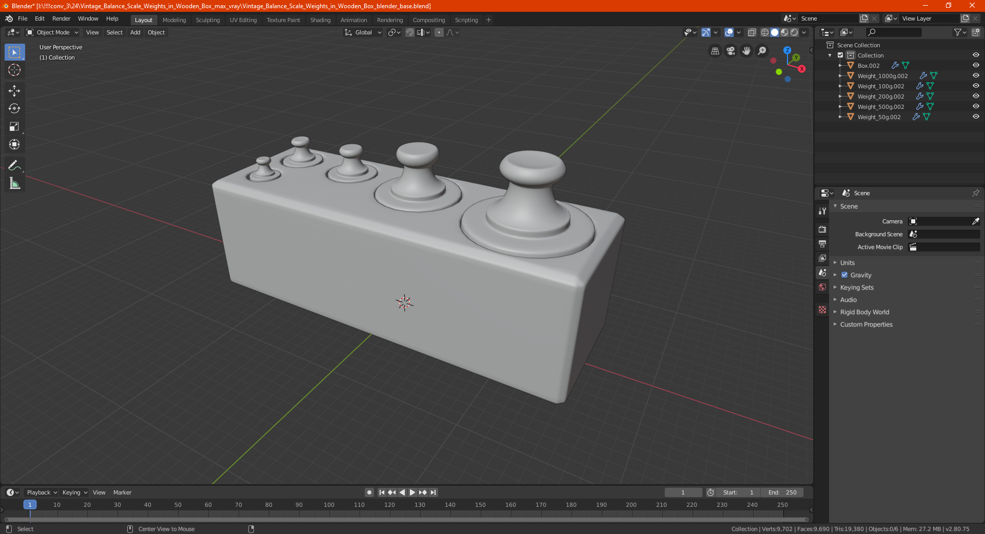 Vintage Balance Scale Weights in Wooden Box is a high quality, photo real 3d model that will enhance detail and realism to any of your rendering projects. The model has a fully textured, detailed design that allows for close-up renders, and was originally modeled in 3ds Max 2020 and rendered with V-Ray. Renders have no postprocessing!
