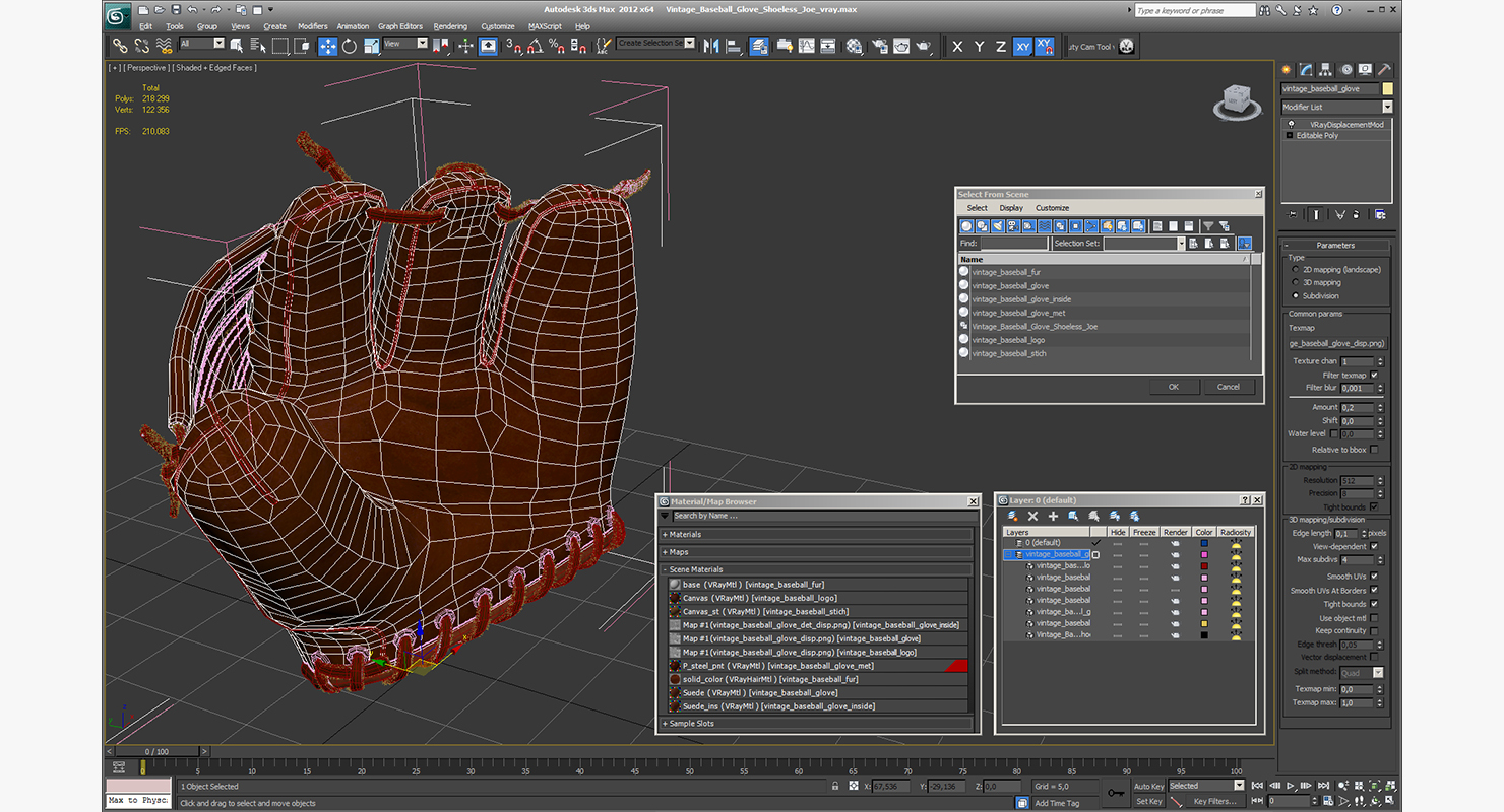 Vintage Baseball Glove Shoeless Joe is a high quality, photo real 3d model that will enhance detail and realism to any of your rendering projects. The model has a fully textured, detailed design that allows for close-up renders, and was originally modeled in 3ds Max 2020 and rendered with V-Ray. Renders have no postprocessing!