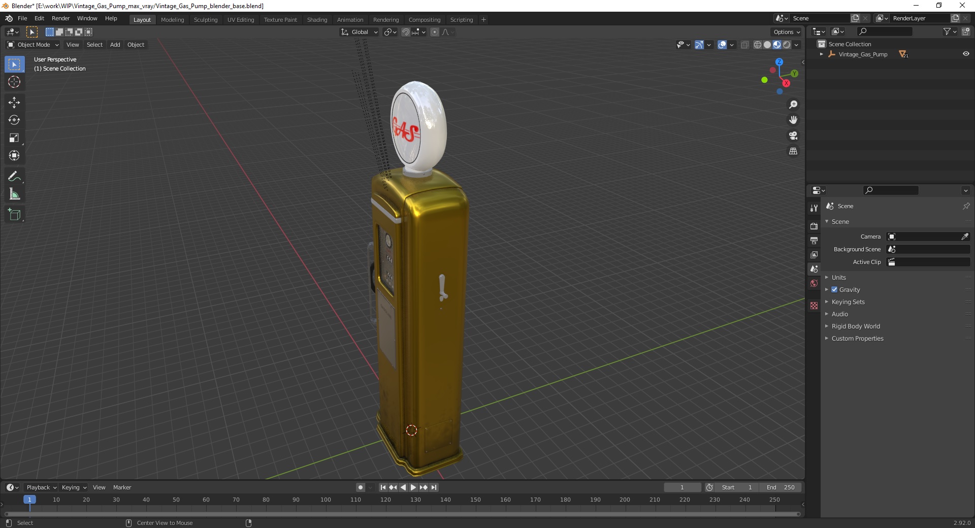 Vintage Gas Pump is a high quality, photo real 3d model that will enhance detail and realism to any of your rendering projects. The model has a fully textured, detailed design that allows for close-up renders, and was originally modeled in 3ds Max 2020 and rendered with V-Ray. Renders have no postprocessing!