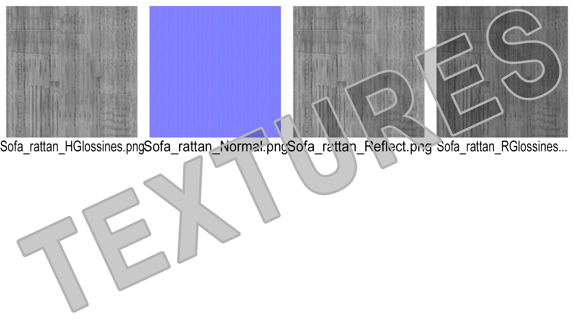 All textures and materials are included and mapped. (All colors can be easily modified.)