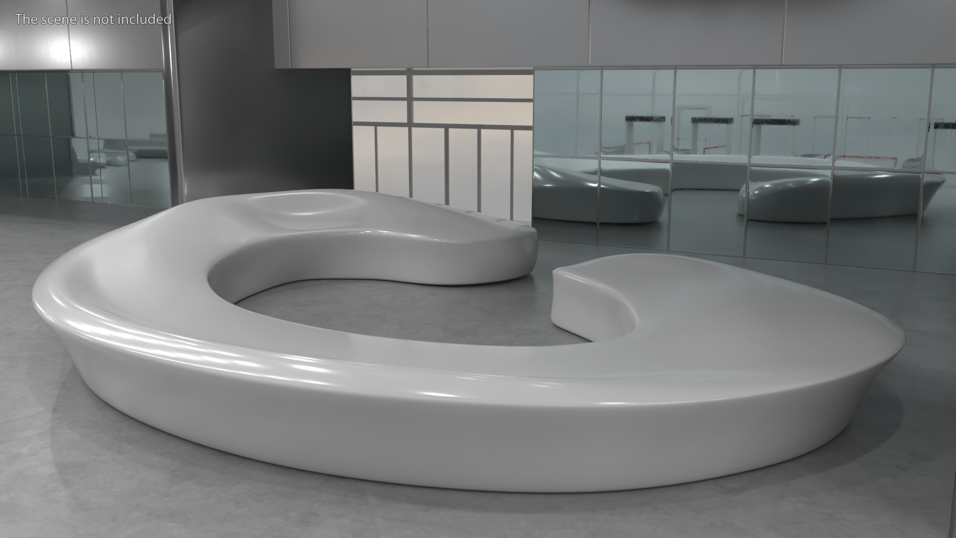 Visionary Reception Counter is a three-dimensional model of futuristic style reception counter that is a modern design furniture implement, and that is a contemporary furniture piece, and that can be used for futuristic style lobby (entry room, foyer, entryway, reception area or entrance hall).