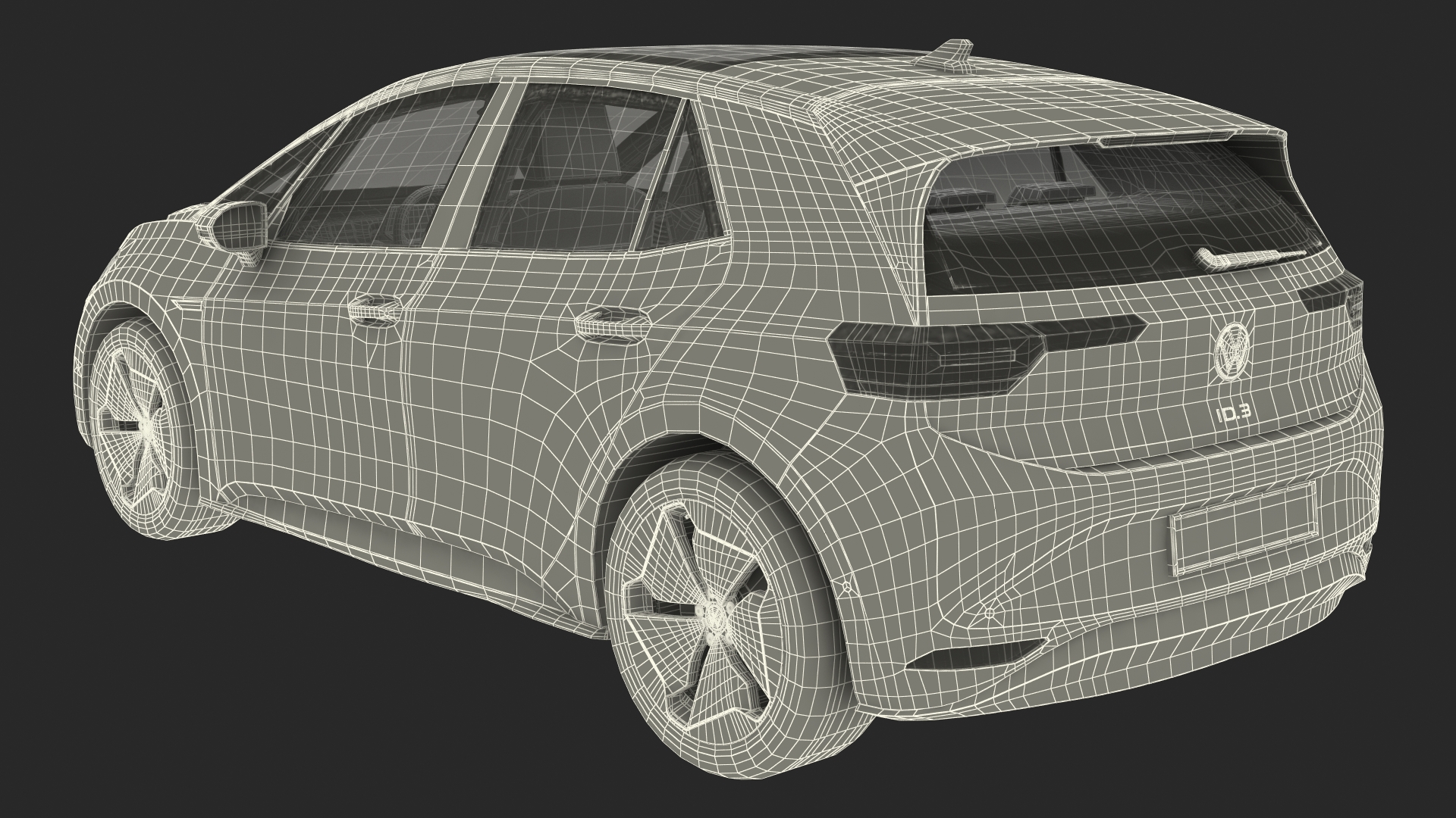 Volkswagen ID.3 Rigged is a three-dimensional model of a 5-door hatchback (body style) electric vehicle which is futuristic small family all-electric car.
