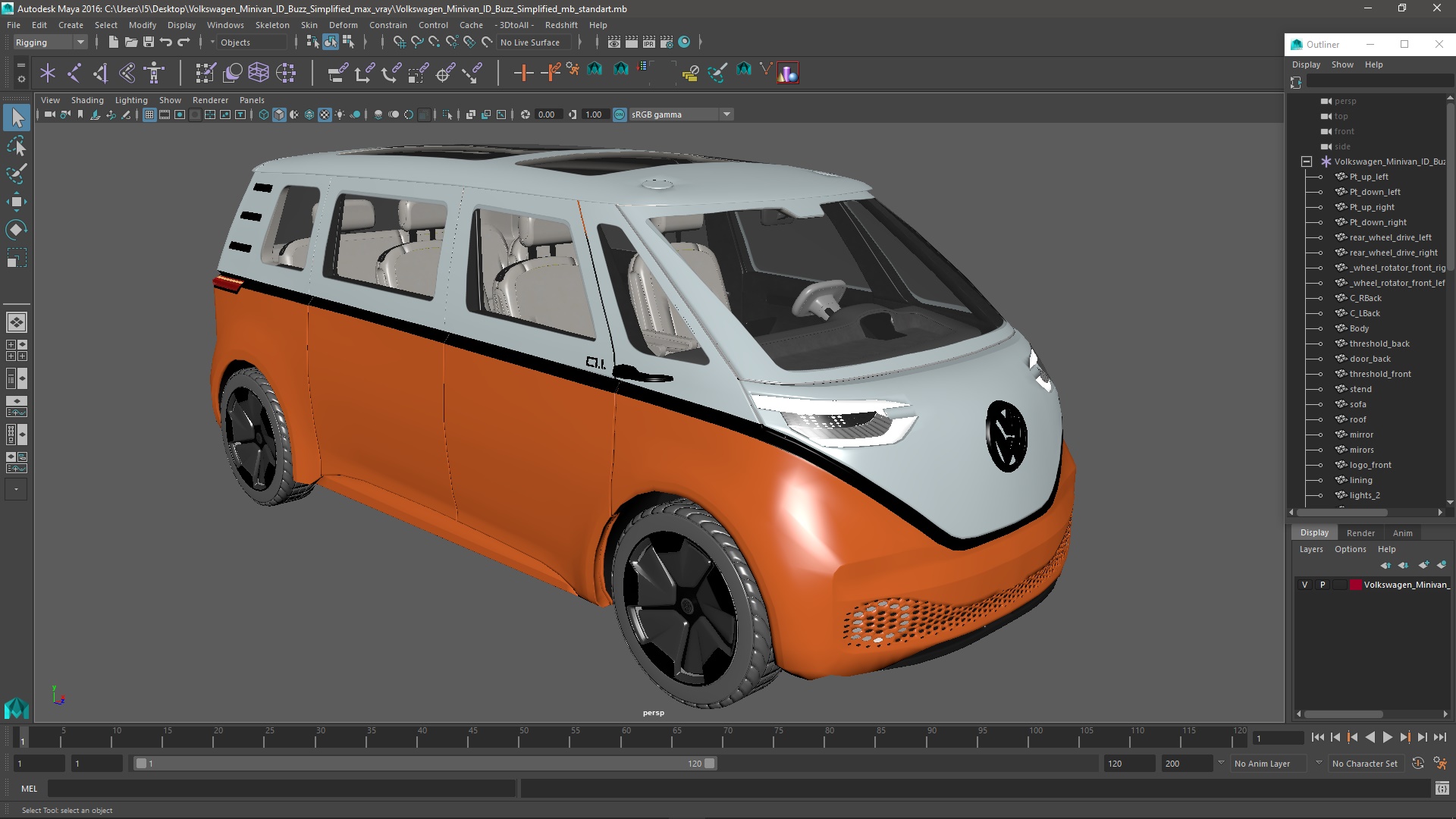Volkswagen Minivan ID Buzz Simplified is a 3d model of an electric concept vehicle designed by Volkswagen that pays homage to the classic VW Bus.