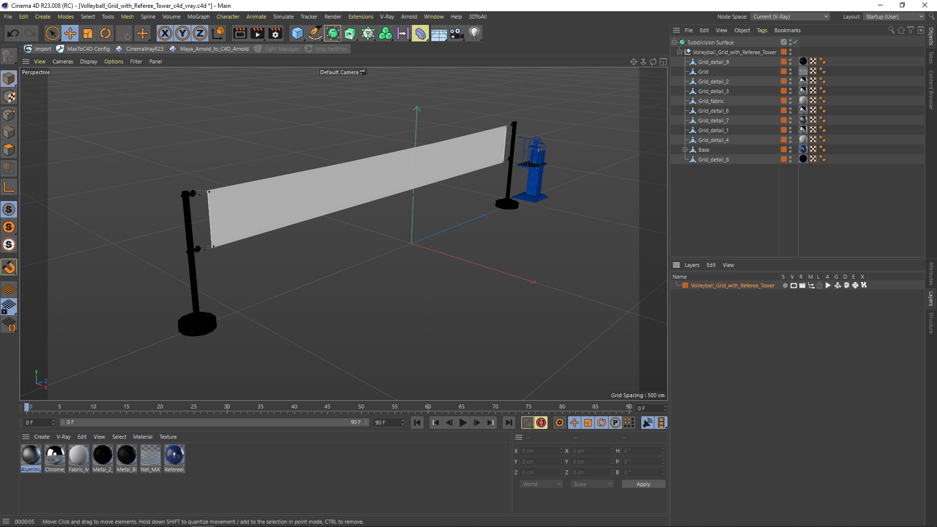 Volleyball Grid with Referee Tower is a high quality, photo real 3d model that will enhance detail and realism to any of your rendering projects. The model has a fully textured, detailed design that allows for close-up renders, and was originally modeled in 3ds Max 2020 and rendered with V-Ray. Renders have no postprocessing!