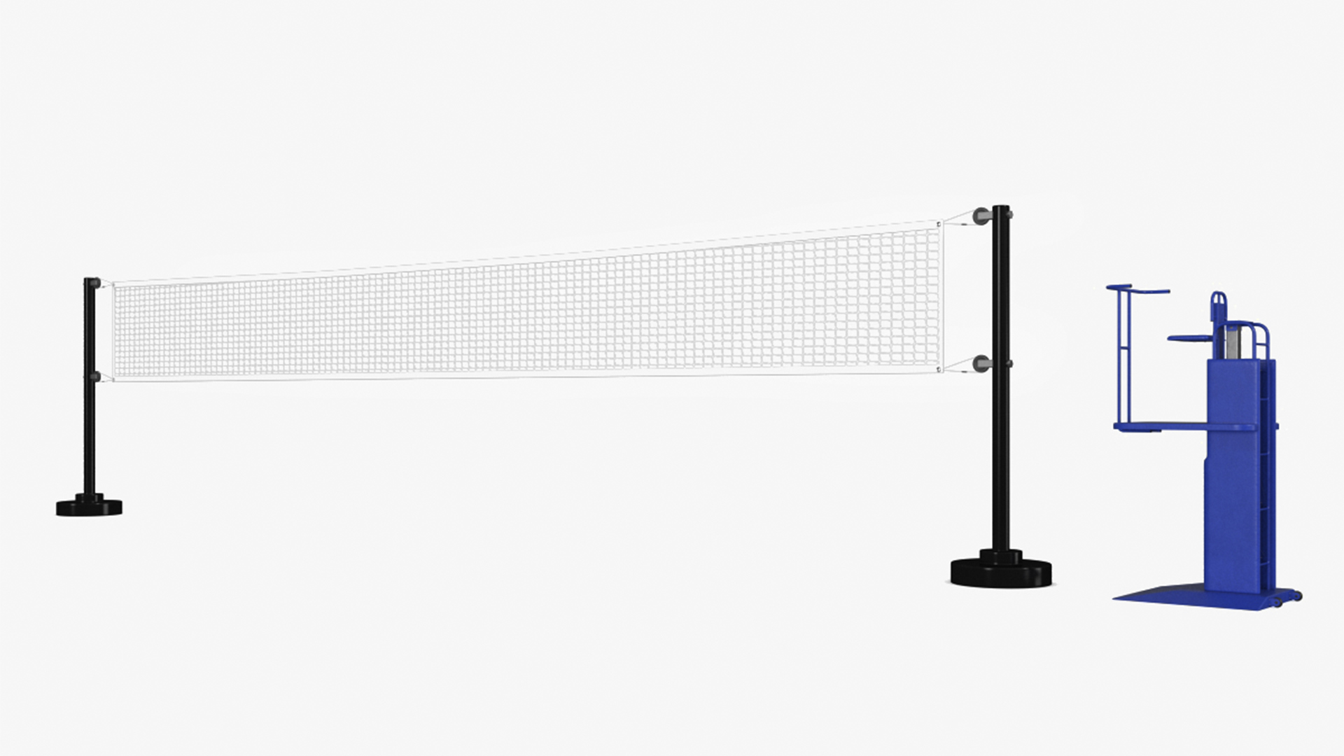 Volleyball Grid with Referee Tower is a 3d model of a volleyball court setup, featuring a detailed volleyball net and an accompanying referee tower, which is essential for official games and tournaments.