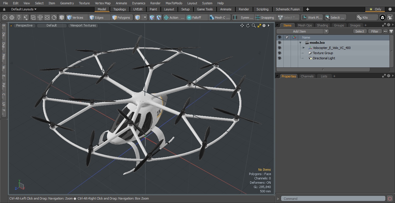 Volocopter E-Volo VC 400 is a 3d model of multicopter aircraft for personal, commercial and governmental use, including land based travel and ship to shore travel.