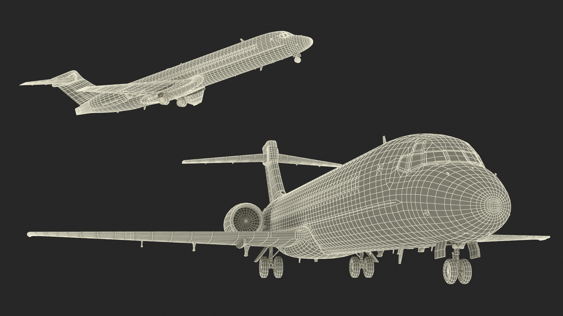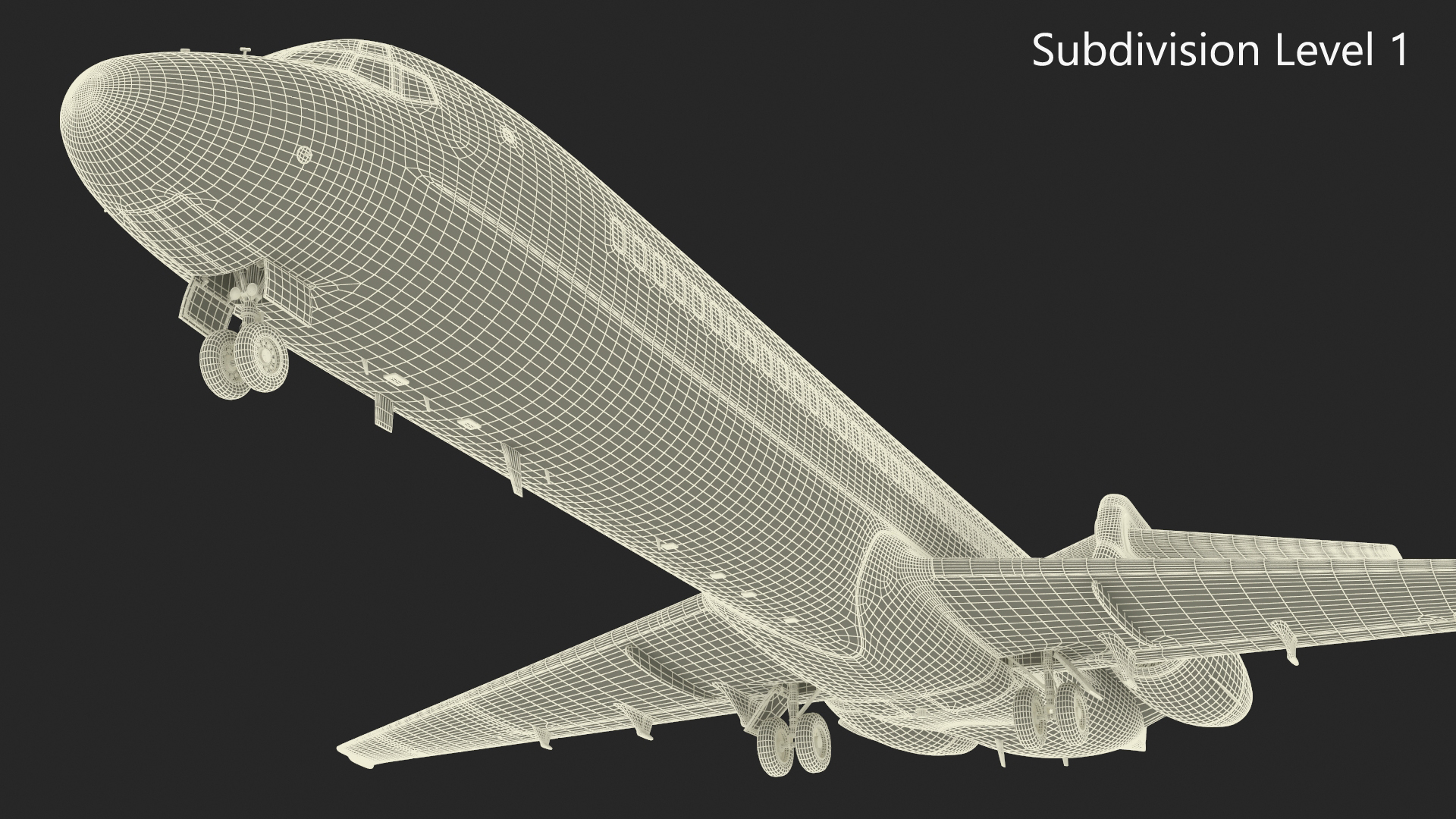 This model features detailed external and internal components, including realistic fuselage textures, cockpit instrumentation, and engine designs that capture the authentic look of the Boeing 717-200. Crafted with precision, it showcases elements like landing gear and wing flaps, making it suitable for a variety of visual applications, including animation and simulation.