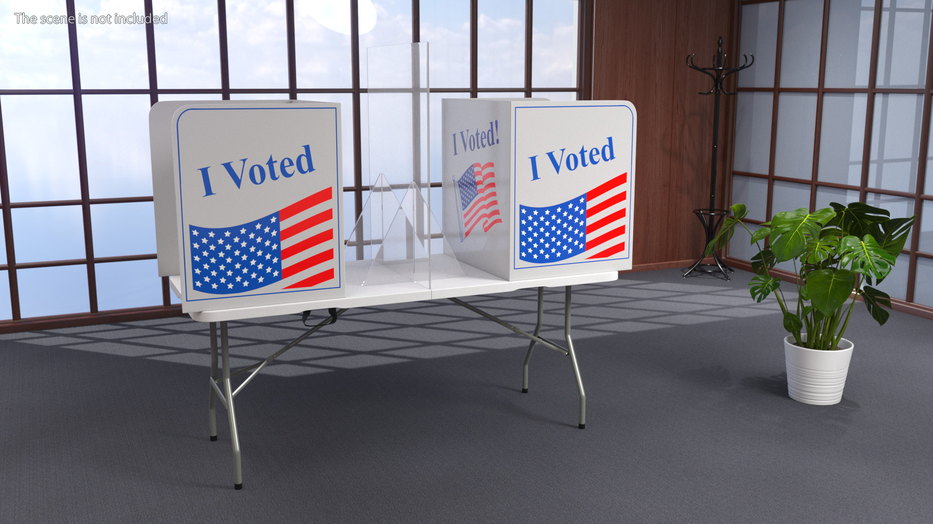This model reflects the essential elements of a secure and organized voting setup, providing designated areas that ensure voter confidentiality and ease of use. Designed with practical, durable materials, this voting table features sturdy legs and a central partition that divides the surface into private spaces for individual voters. The model is suitable for layouts requiring privacy partitions, offering clean lines and an accessible height, making it ideal for polling stations, election centers, and public service areas where user functionality and privacy are paramount.