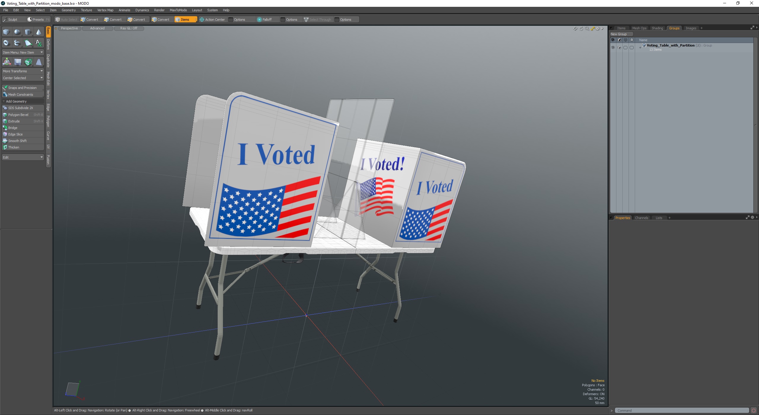 Voting Table with Partition is a high quality, photo real 3d model that will enhance detail and realism to any of your rendering projects. The model has a fully textured, detailed design that allows for close-up renders, and was originally modeled in 3ds Max 2020 and rendered with V-Ray. Renders have no postprocessing!