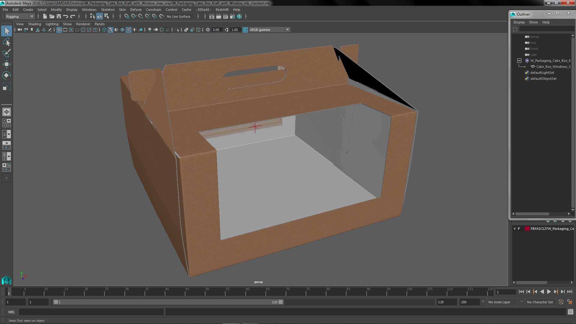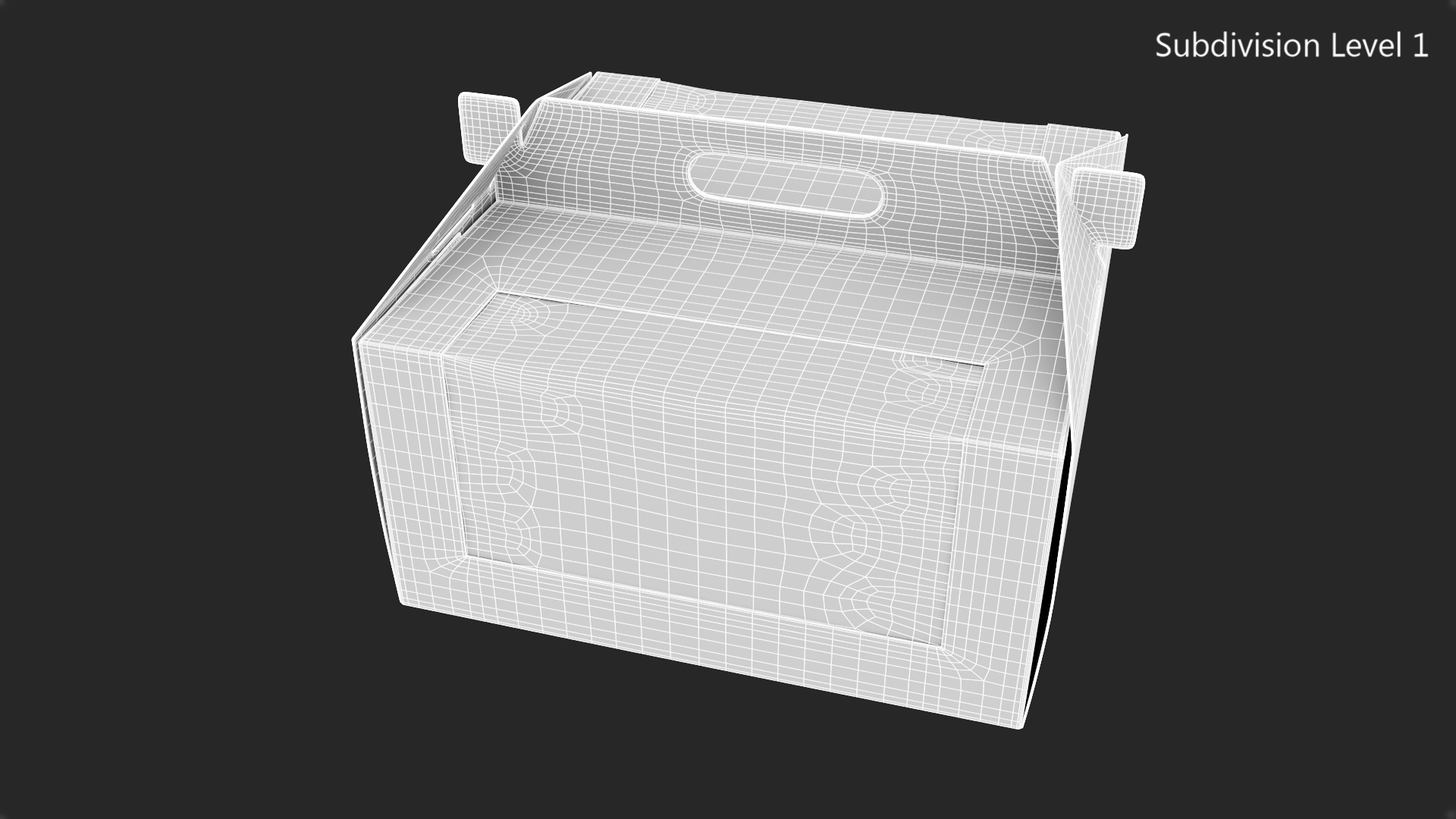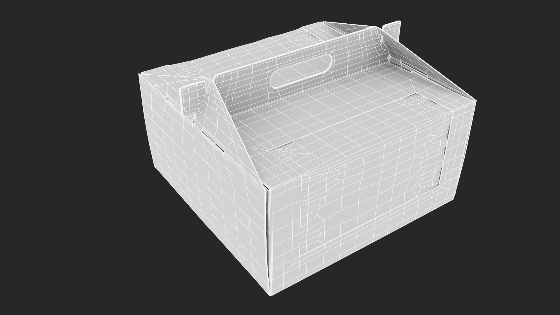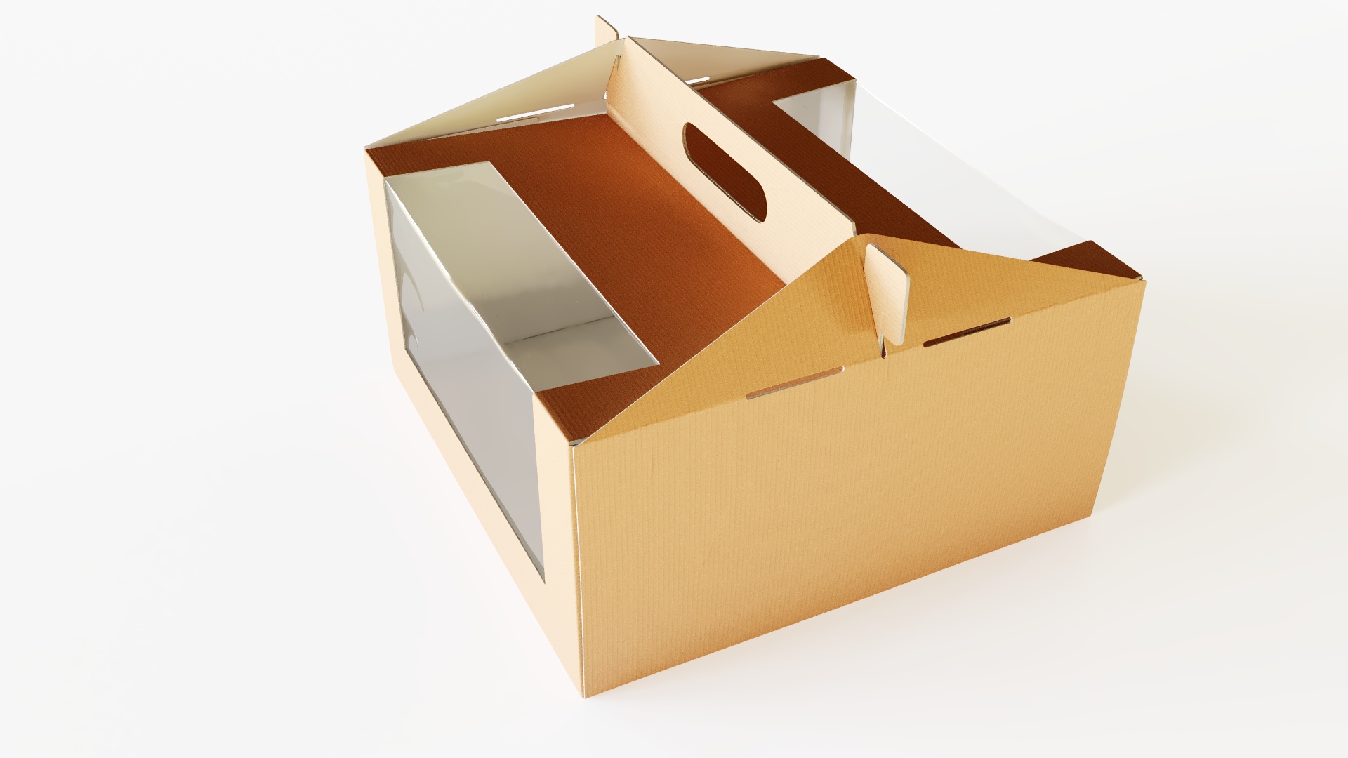 W Packaging Cake Box Kraft with Window is a three-dimensional model of a popular, common cardboard (carton) cake-carrier, which is box-like cardboard container with handle for pastry or bakery delivery.