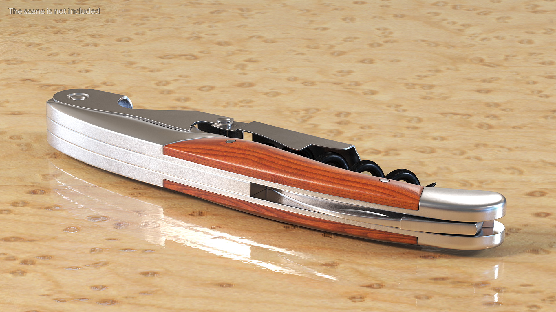 Waiters Corkscrew Wood Handle Fold is a three-dimensional model of a foldable professional tool for drawing and extraction corks from wine bottles.