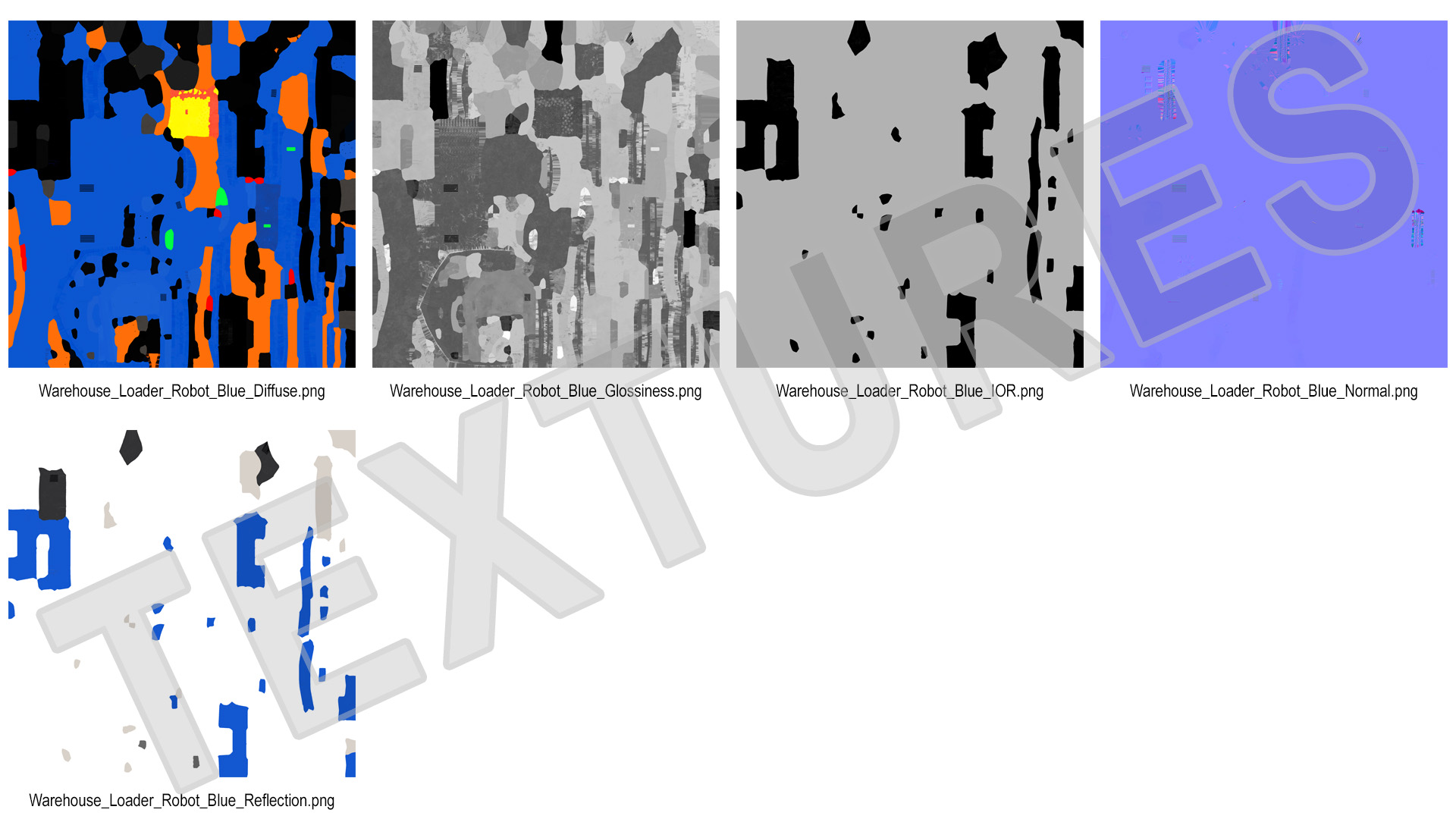 Warehouse Loader Robot Blue Rigged is a high quality, photo real 3d model that will enhance detail and realism to any of your rendering projects. The model has a fully textured, detailed design that allows for close-up renders, and was originally modeled in 3ds Max 2020 and rendered with V-Ray. Renders have no postprocessing!