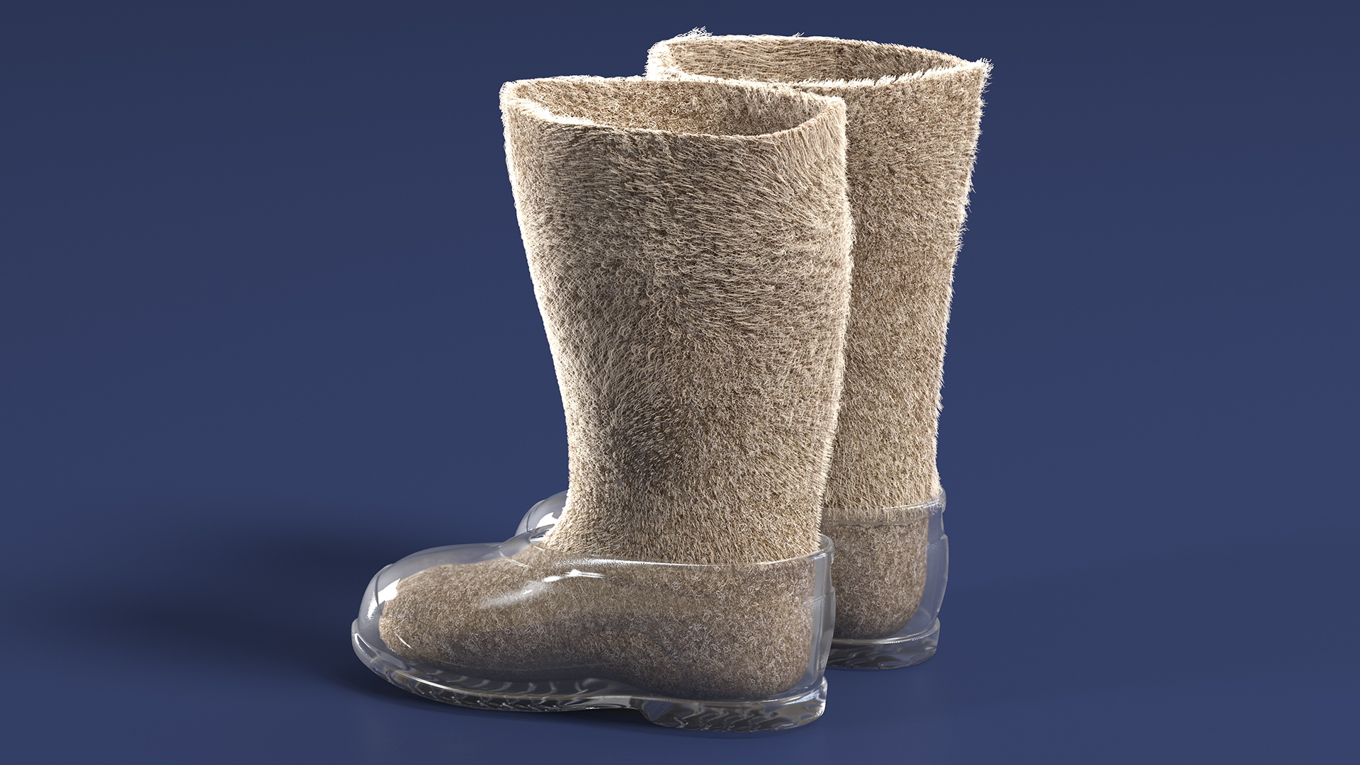 Warm Rustic Felt Boots With Transparent Galoshes Fur is a high quality, photo real 3d model that will enhance detail and realism to any of your rendering projects. The model has a fully textured, detailed design that allows for close-up renders, and was originally modeled in 3ds Max 2020 and rendered with V-Ray. Renders have no postprocessing!