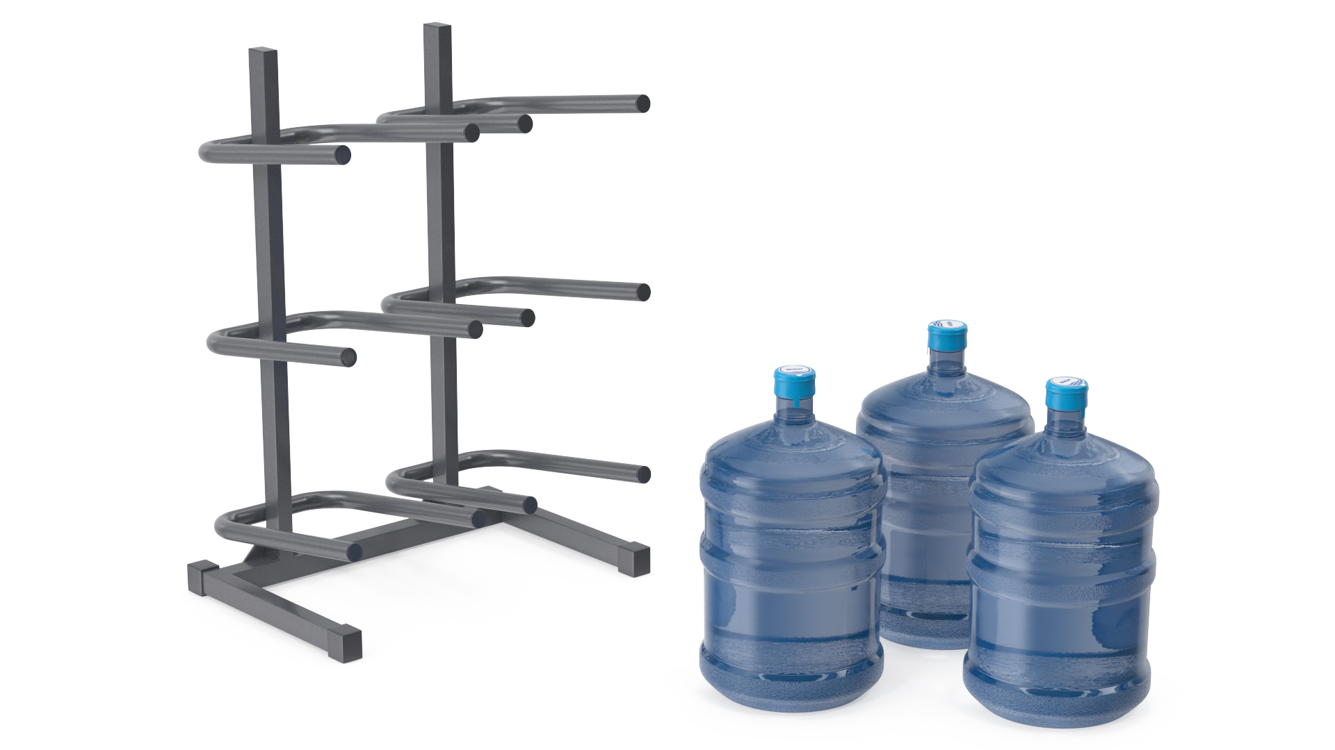 Water Cooler Jug Rack for 6 Bottles Gray is a 3D model of special floor standing device which designed for freshwater delivery bottles organize, storage, and dispensing.