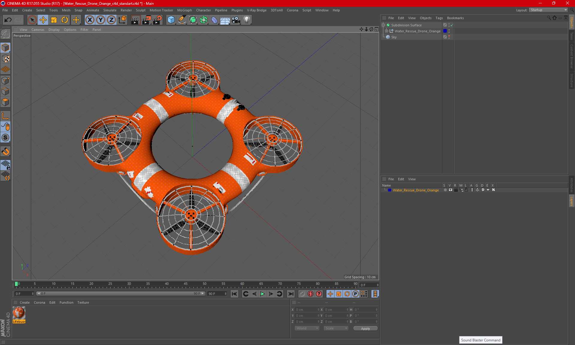 Water Rescue Drone Orange is a high quality, photo real 3d model that will enhance detail and realism to any of your rendering projects. The model has a fully textured, detailed design that allows for close-up renders, and was originally modeled in 3ds Max 2020 and rendered with V-Ray. Renders have no postprocessing!