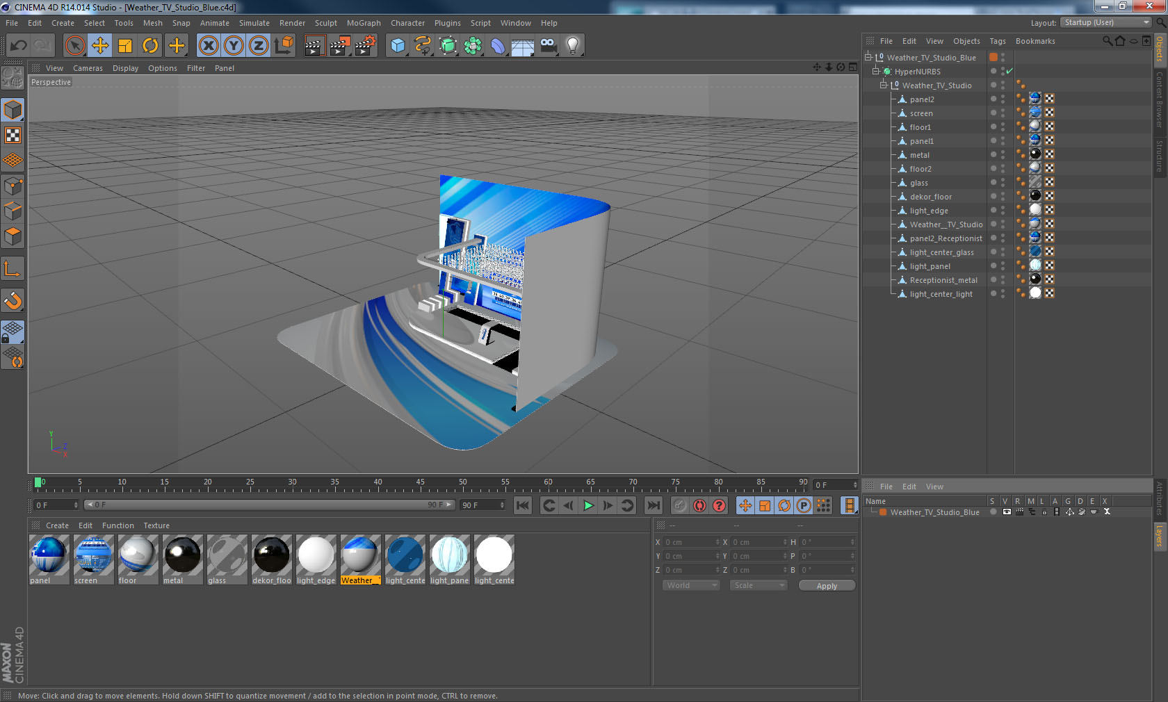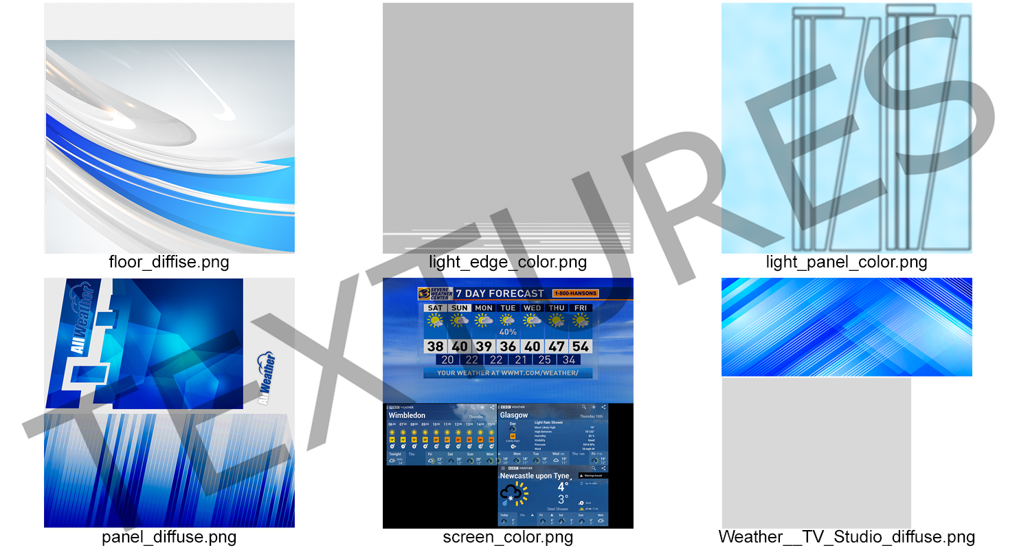 Weather TV Studio Blue is a high quality, photo real 3d model that will enhance detail and realism to any of your rendering projects. The model has a fully textured, detailed design that allows for close-up renders, and was originally modeled in 3ds Max 2020 and rendered with V-Ray. Renders have no postprocessing!