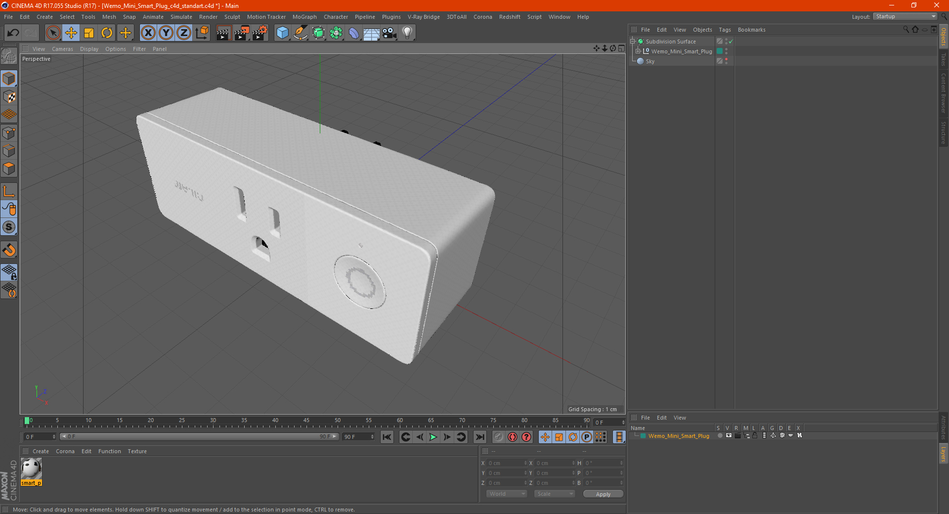Wemo Mini Smart Plug is a high quality, photo real 3d model that will enhance detail and realism to any of your rendering projects. The model has a fully textured, detailed design that allows for close-up renders, and was originally modeled in 3ds Max 2020 and rendered with V-Ray. Renders have no postprocessing!