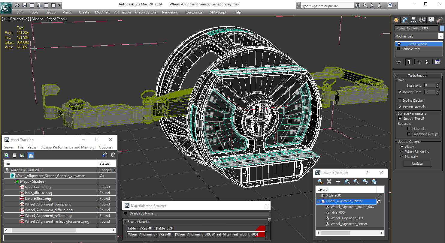Wheel Alignment Sensor Generic is a high quality, photo real 3d model that will enhance detail and realism to any of your rendering projects. The model has a fully textured, detailed design that allows for close-up renders, and was originally modeled in 3ds Max 2020 and rendered with V-Ray. Renders have no postprocessing!