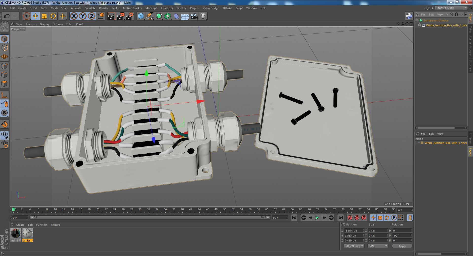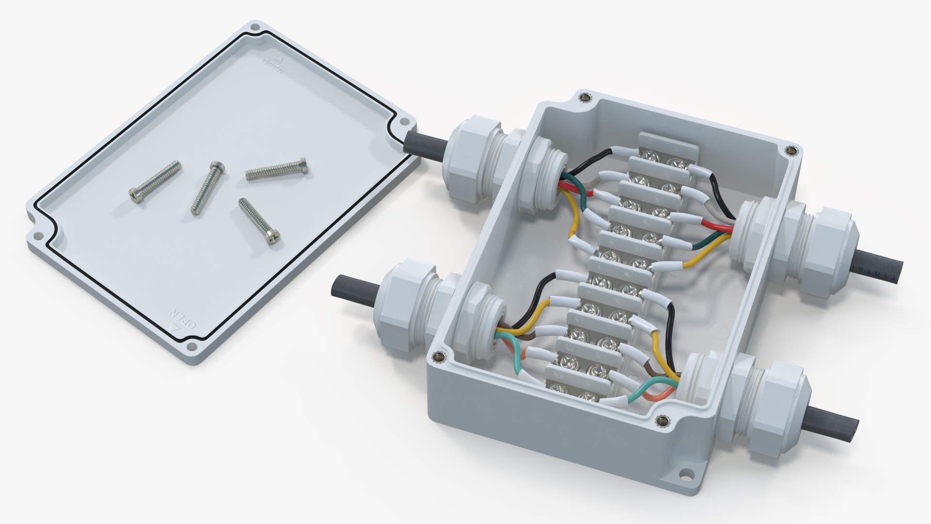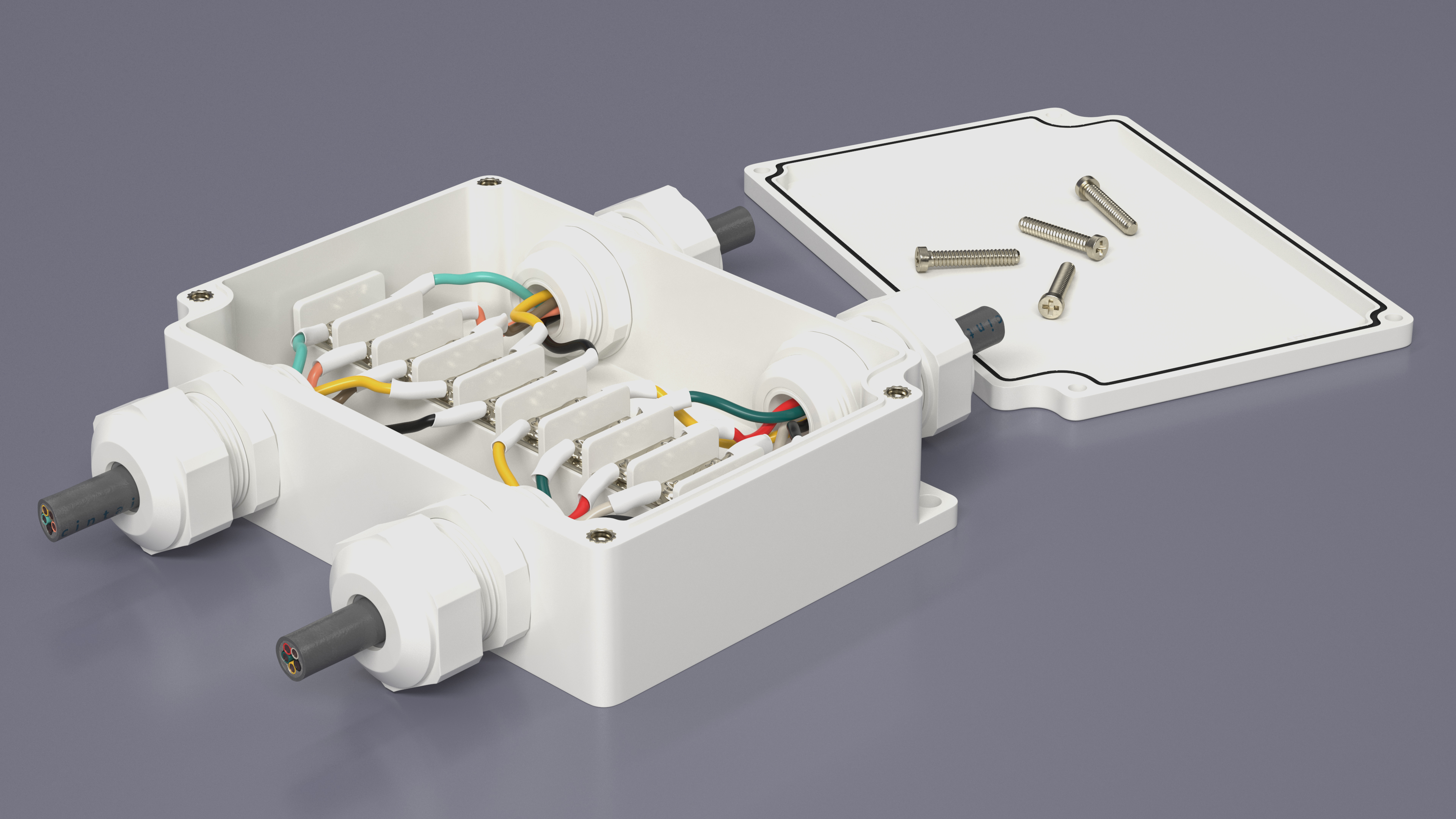 White Junction Box with 4 Wires is a three-dimensional model of a popular equipment for electrical wiring works.