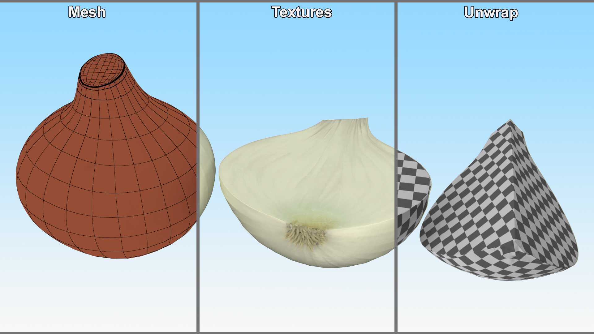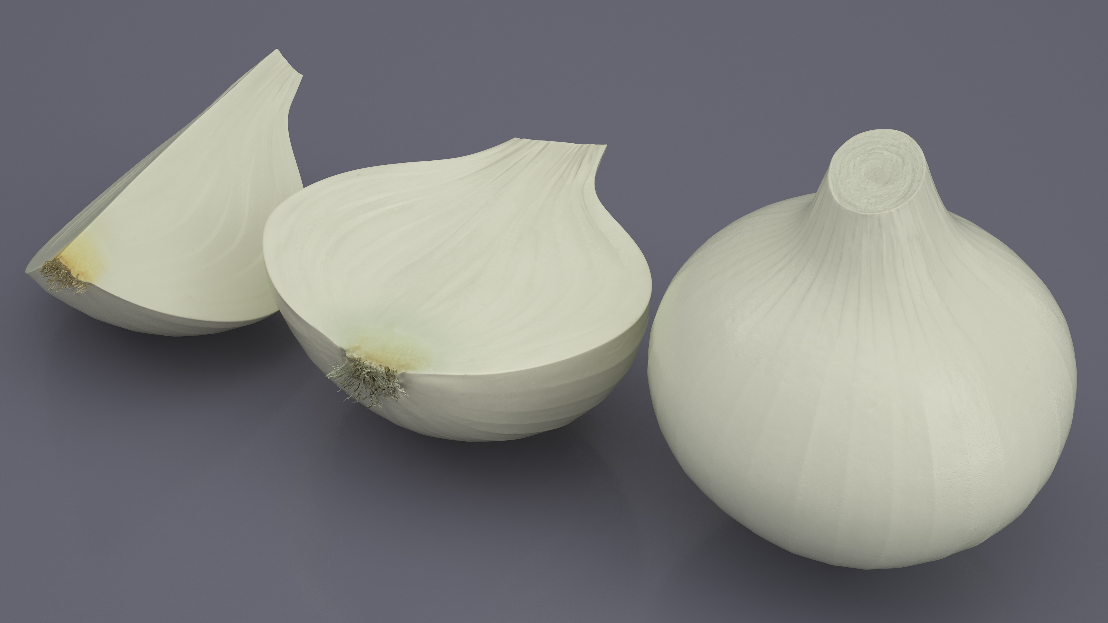 White Onions Fur is a 3d model of onions with white skin that have a flavor that is less strong than that of other onions.