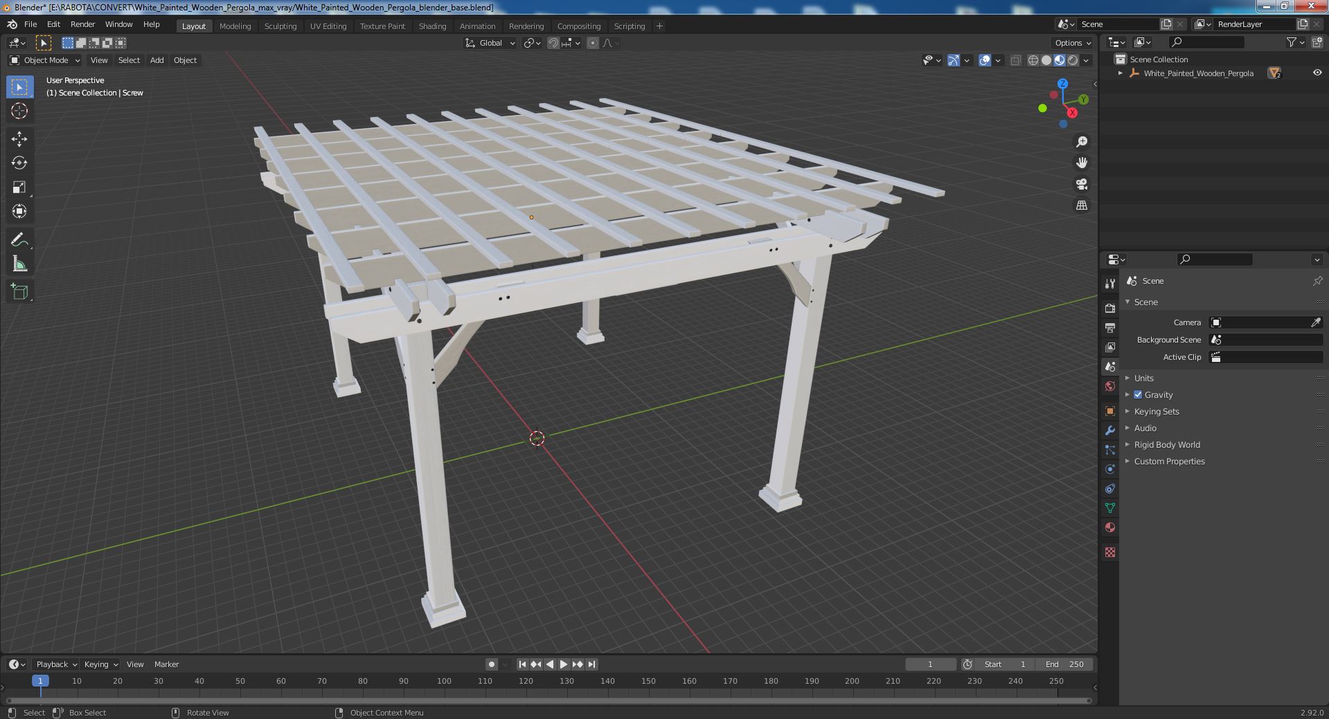White Painted Wooden Pergola is a high quality, photo real 3d model that will enhance detail and realism to any of your rendering projects. The model has a fully textured, detailed design that allows for close-up renders, and was originally modeled in 3ds Max 2020 and rendered with V-Ray. Renders have no postprocessing!