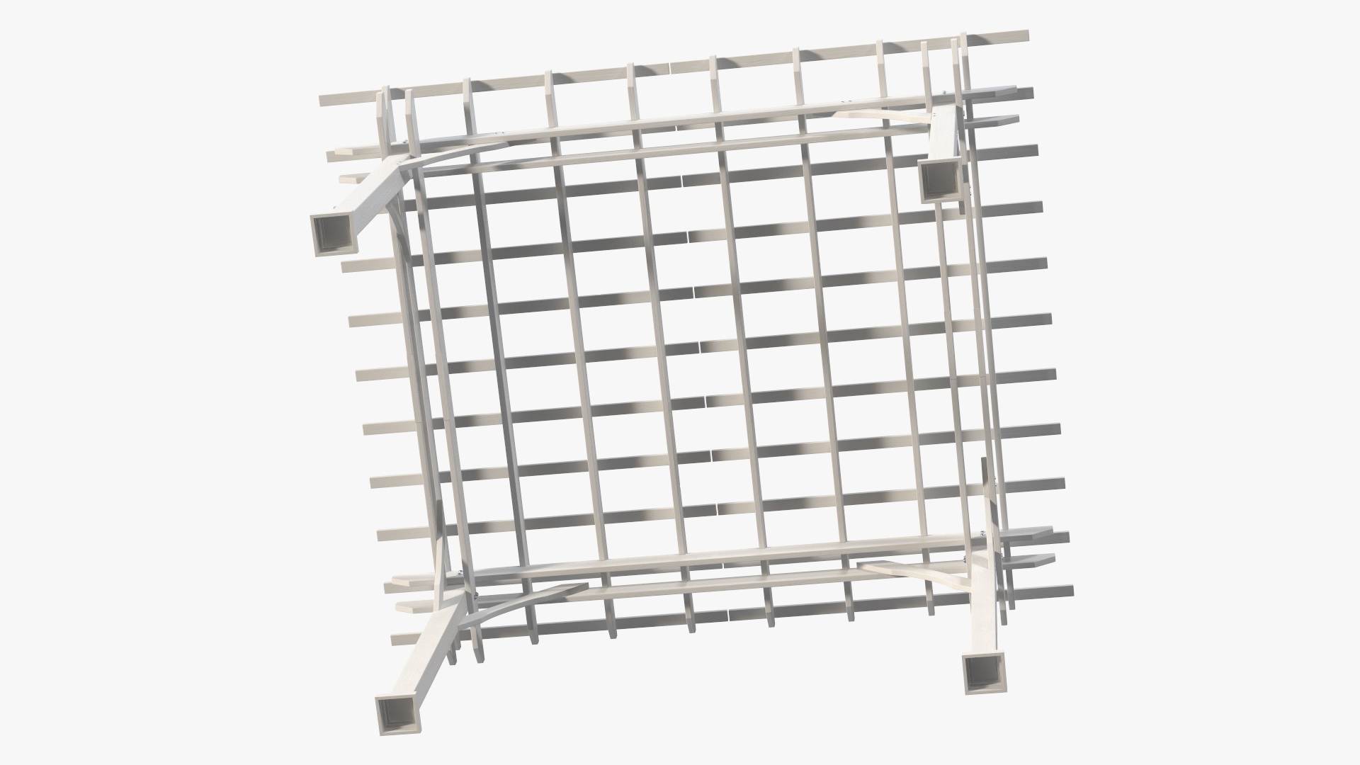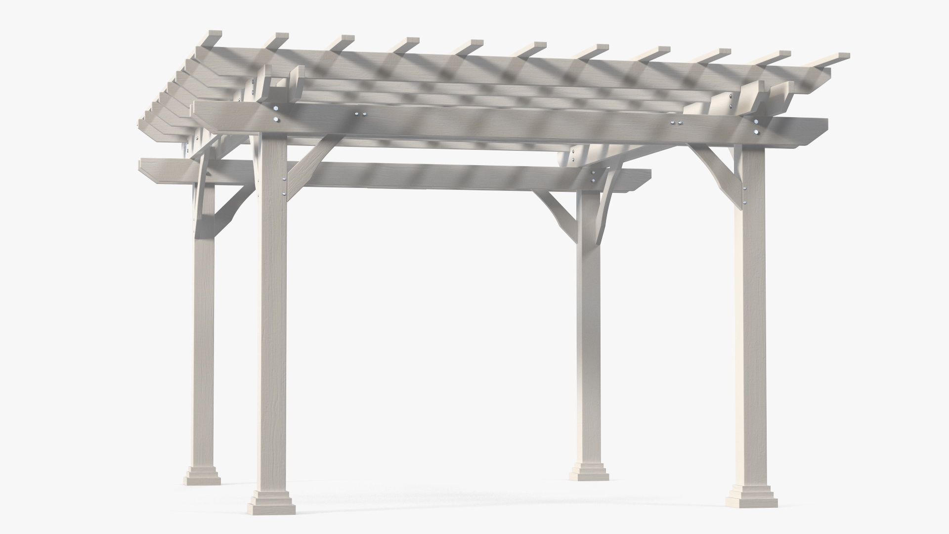 White Painted Wooden Pergola is a 3D model of wooden construction which is a type of decorative outdoor structure, and which is made of wood and designed to provide shade, shelter, and visual interest to a backyard, patio or garden space.