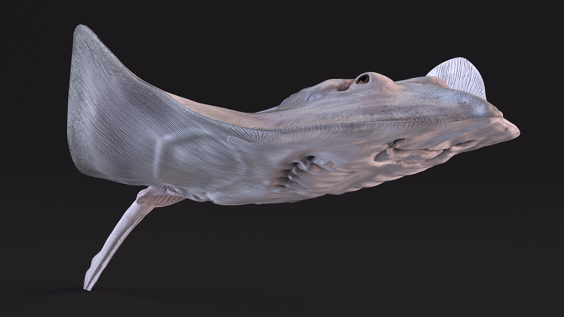 White Stingray Floating on the Bottom is a high quality, photo real 3d model that will enhance detail and realism to any of your rendering projects. The model has a fully textured, detailed design that allows for close-up renders, and was originally modeled in 3ds Max 2020 and rendered with V-Ray. Renders have no postprocessing!
