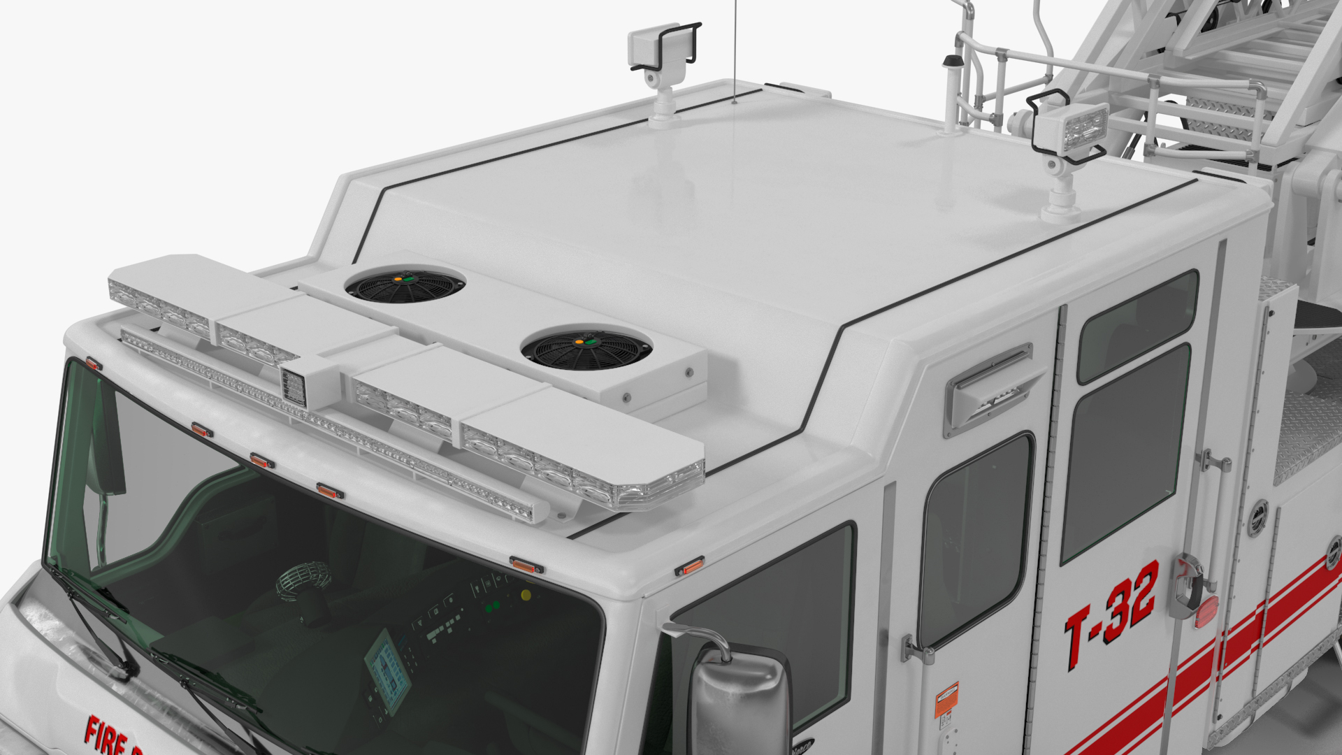 White Velocity Ascendant Fire Truck is a three-dimensional model of fire engine truck which features an extendable ladder, a spacious cabin, and compartments for firefighting equipment.