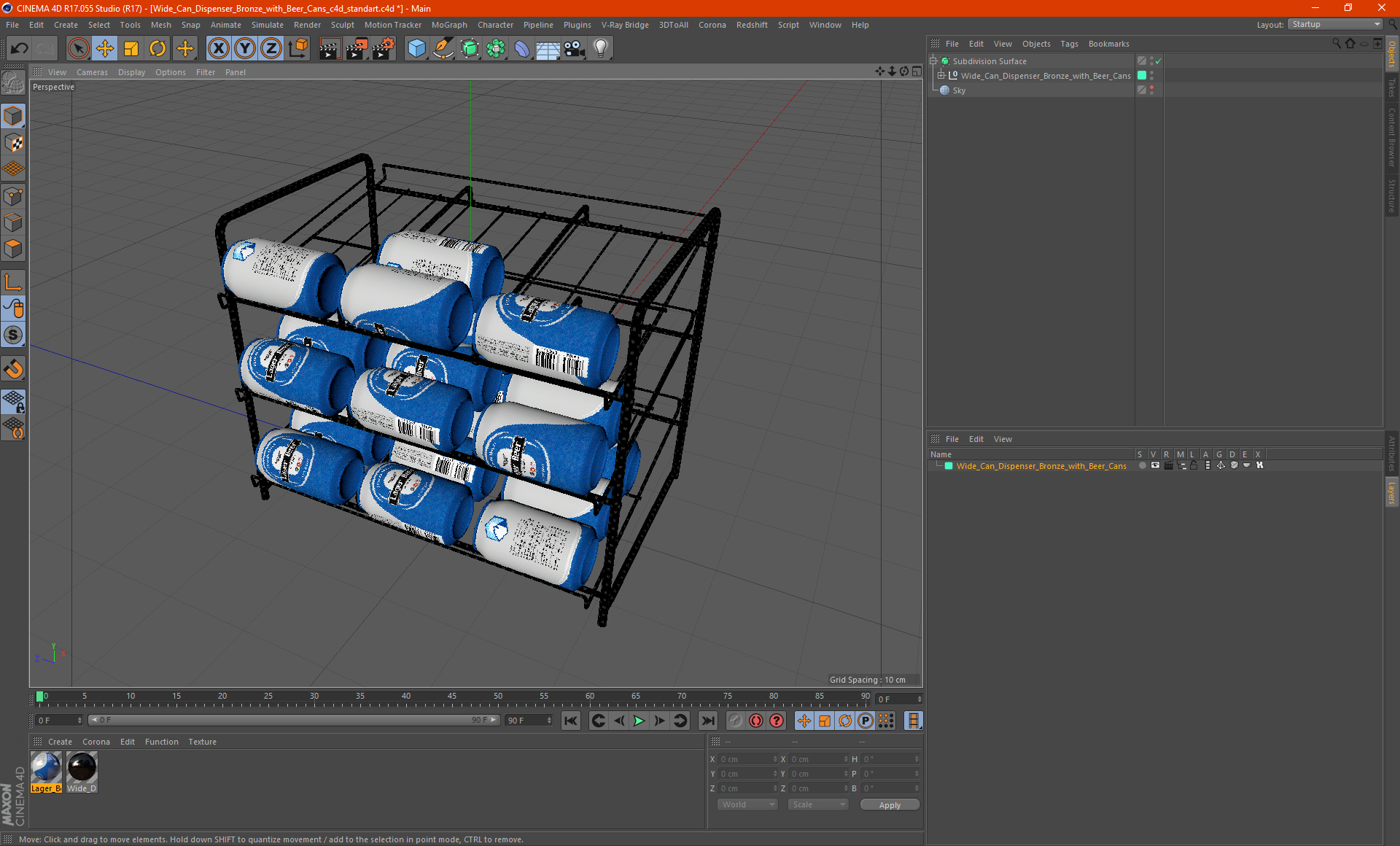 Wide Can Dispenser Bronze with Beer Cans is a high quality, photo real 3d model that will enhance detail and realism to any of your rendering projects. The model has a fully textured, detailed design that allows for close-up renders, and was originally modeled in 3ds Max 2020 and rendered with V-Ray. Renders have no postprocessing!
