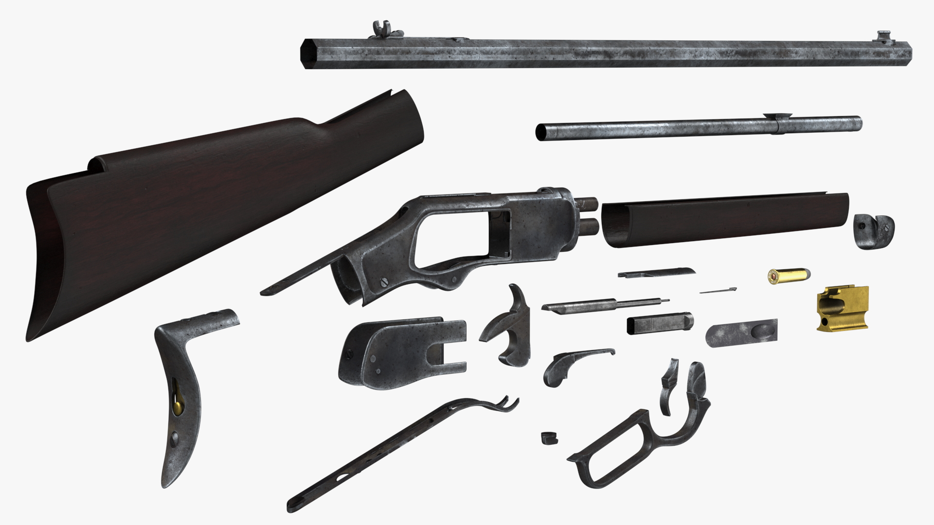 Winchester Model 1873 Lever Action Rifle Rigged is a 3d model of rifle manufactured by the American Winchester Repeating Arms Company.