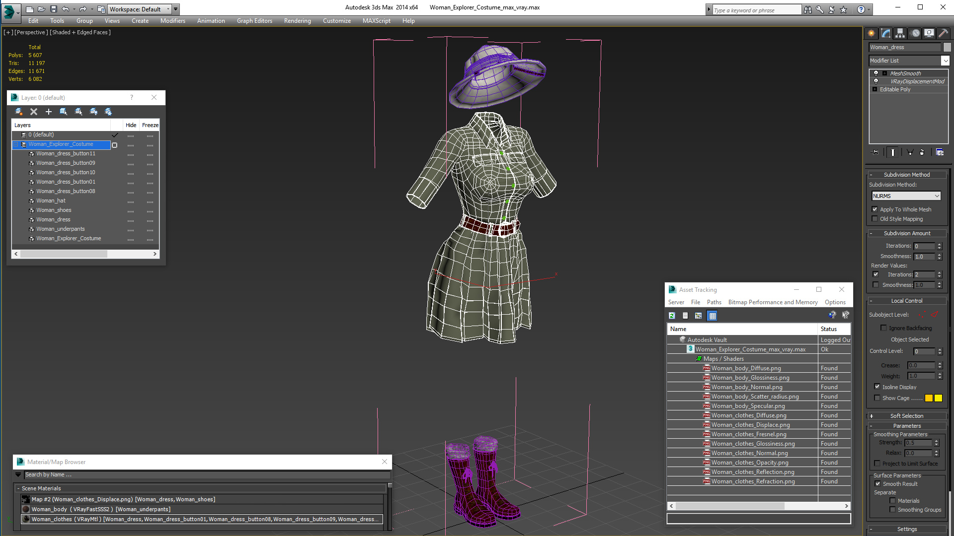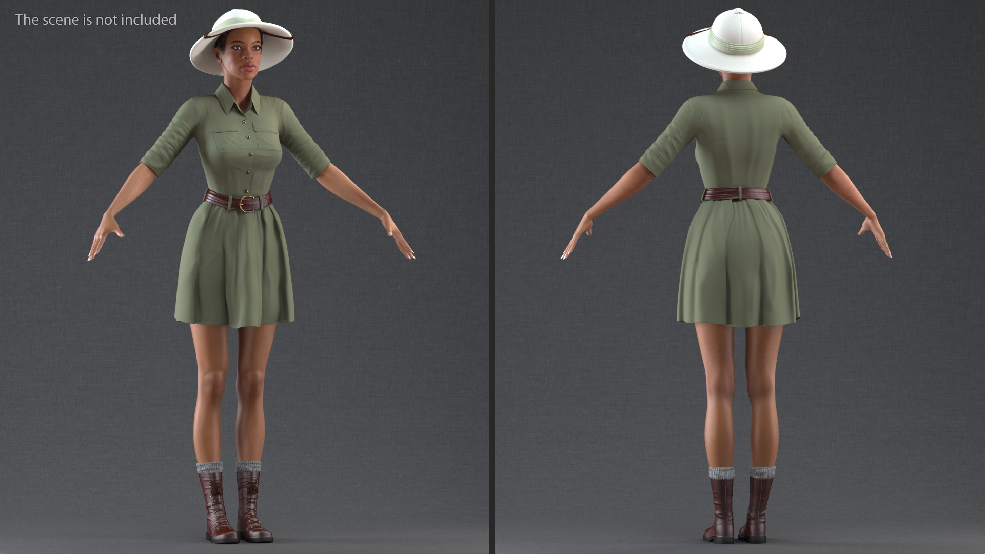 Woman Explorer Costume is a high quality, photo real 3d model that will enhance detail and realism to any of your rendering projects. The model has a fully textured, detailed design that allows for close-up renders, and was originally modeled in 3ds Max 2020 and rendered with V-Ray. Renders have no postprocessing!